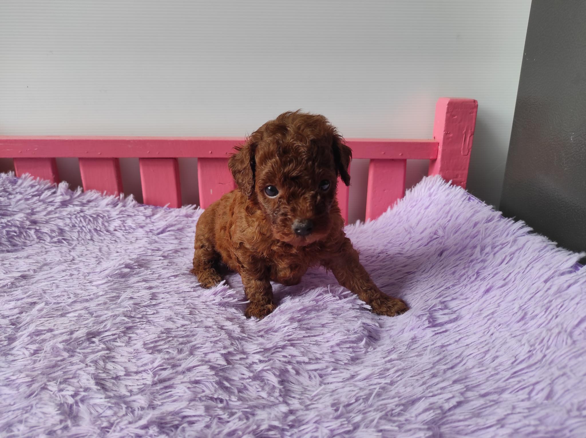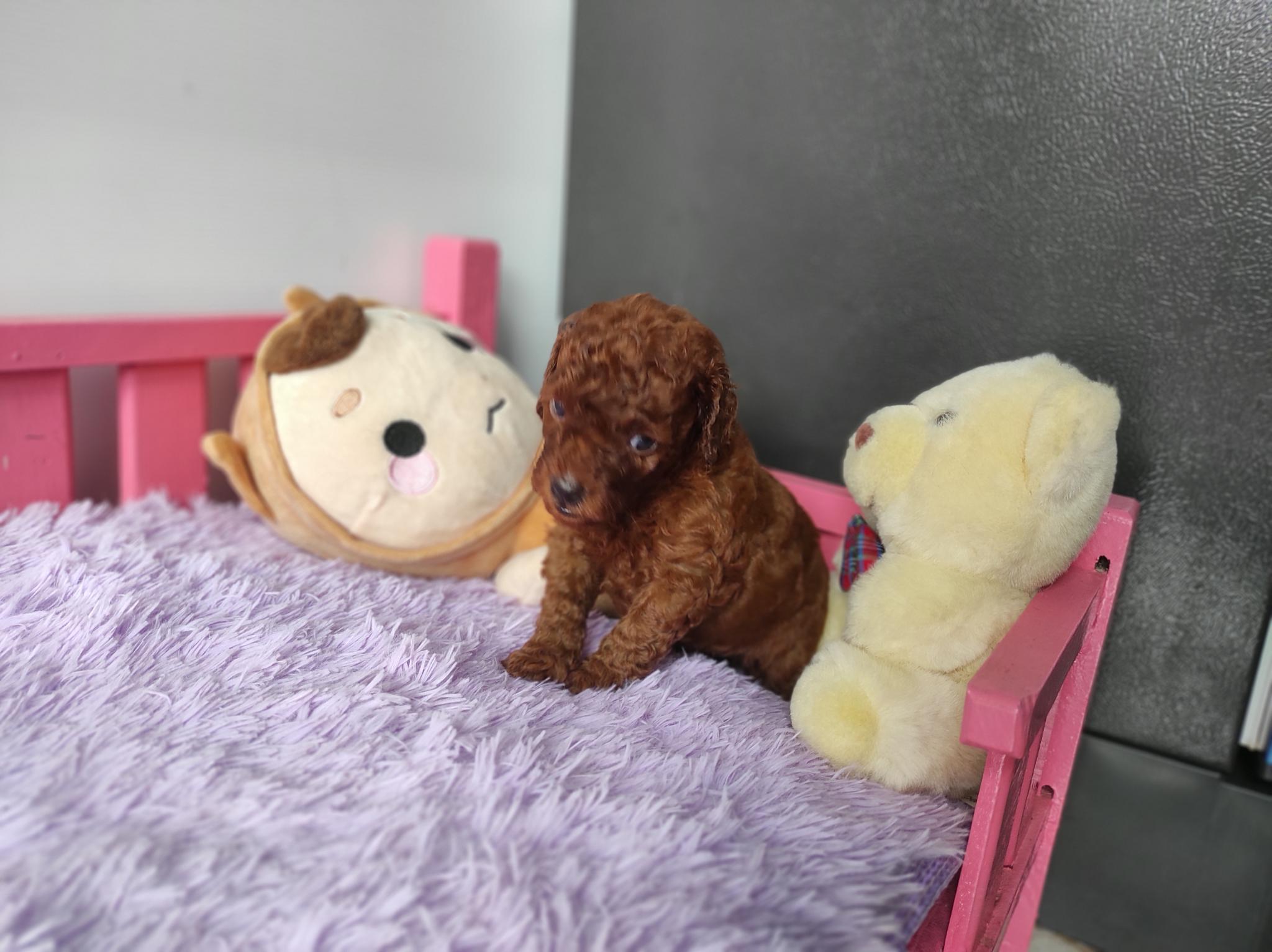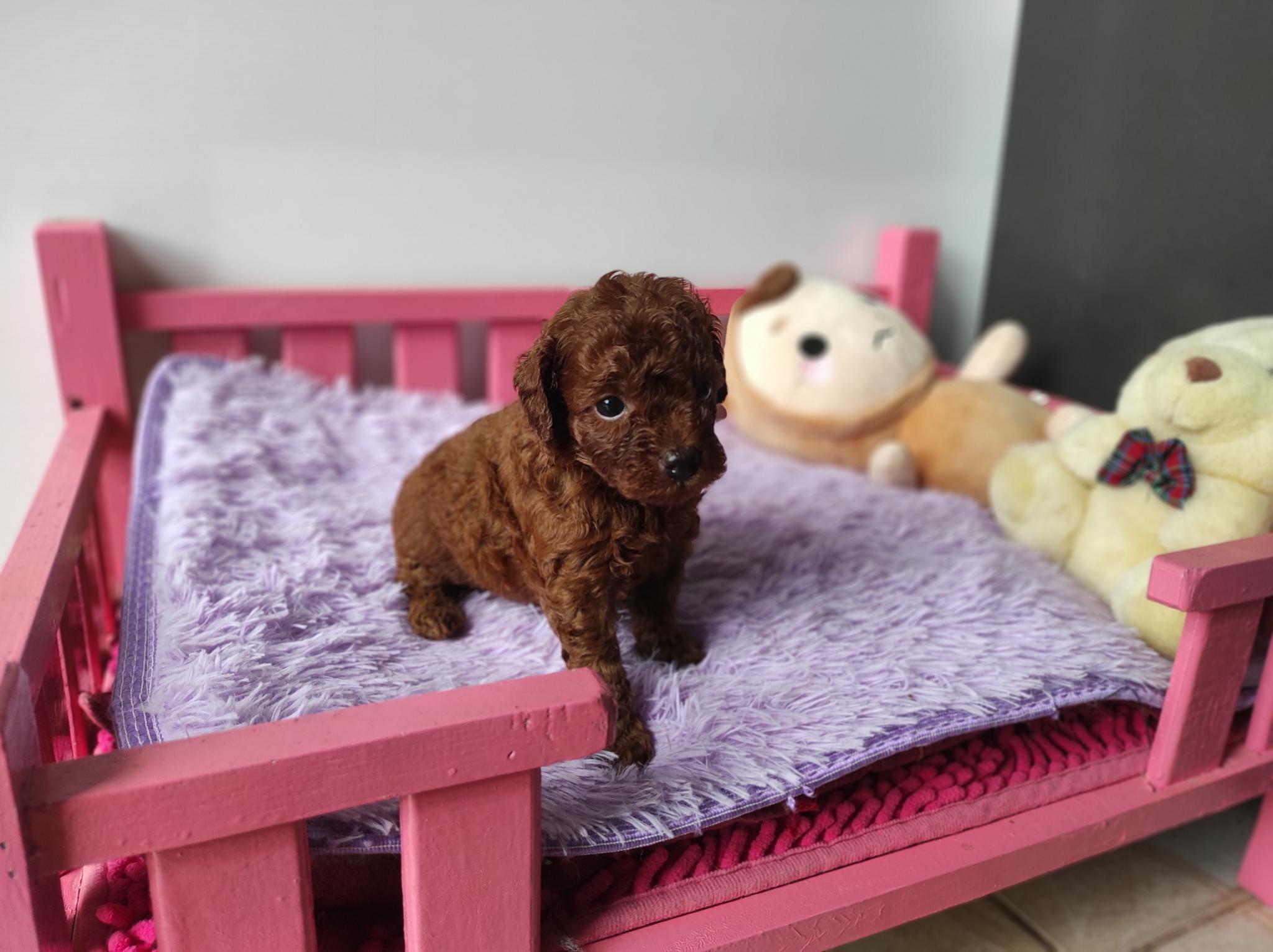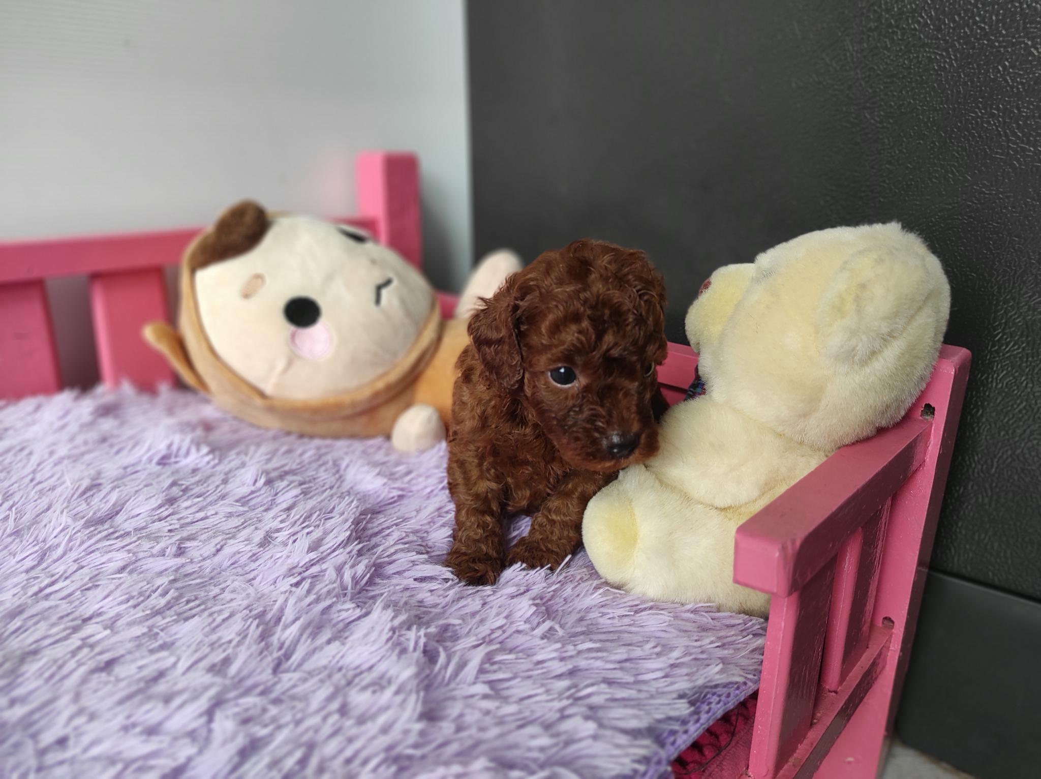 พุดเดิ้ลทอย สีแดงเข้ม เพศผู้ ไซด์เล็ก ขนแน่น หยิก น่ารัก ขี่เล่น