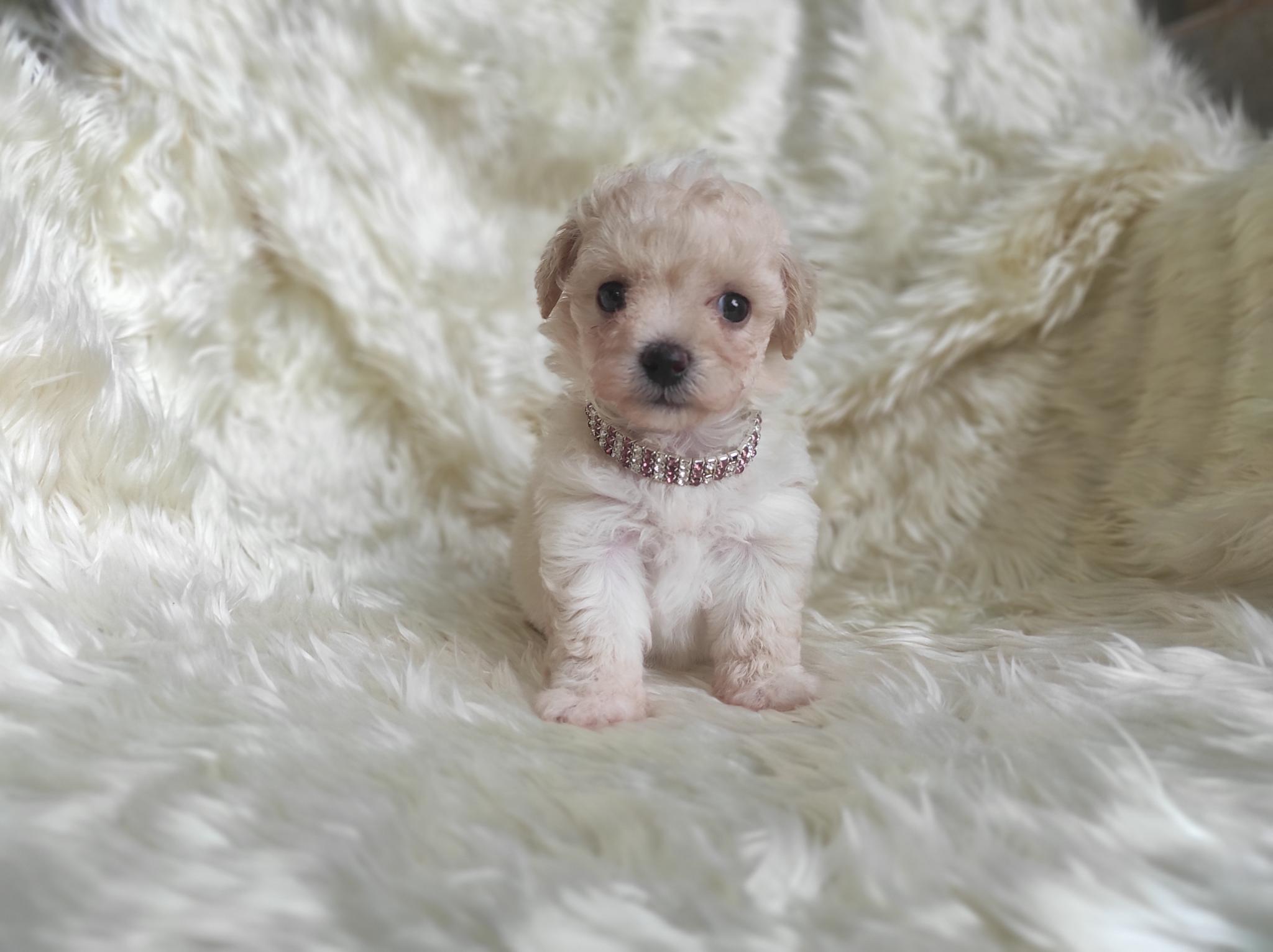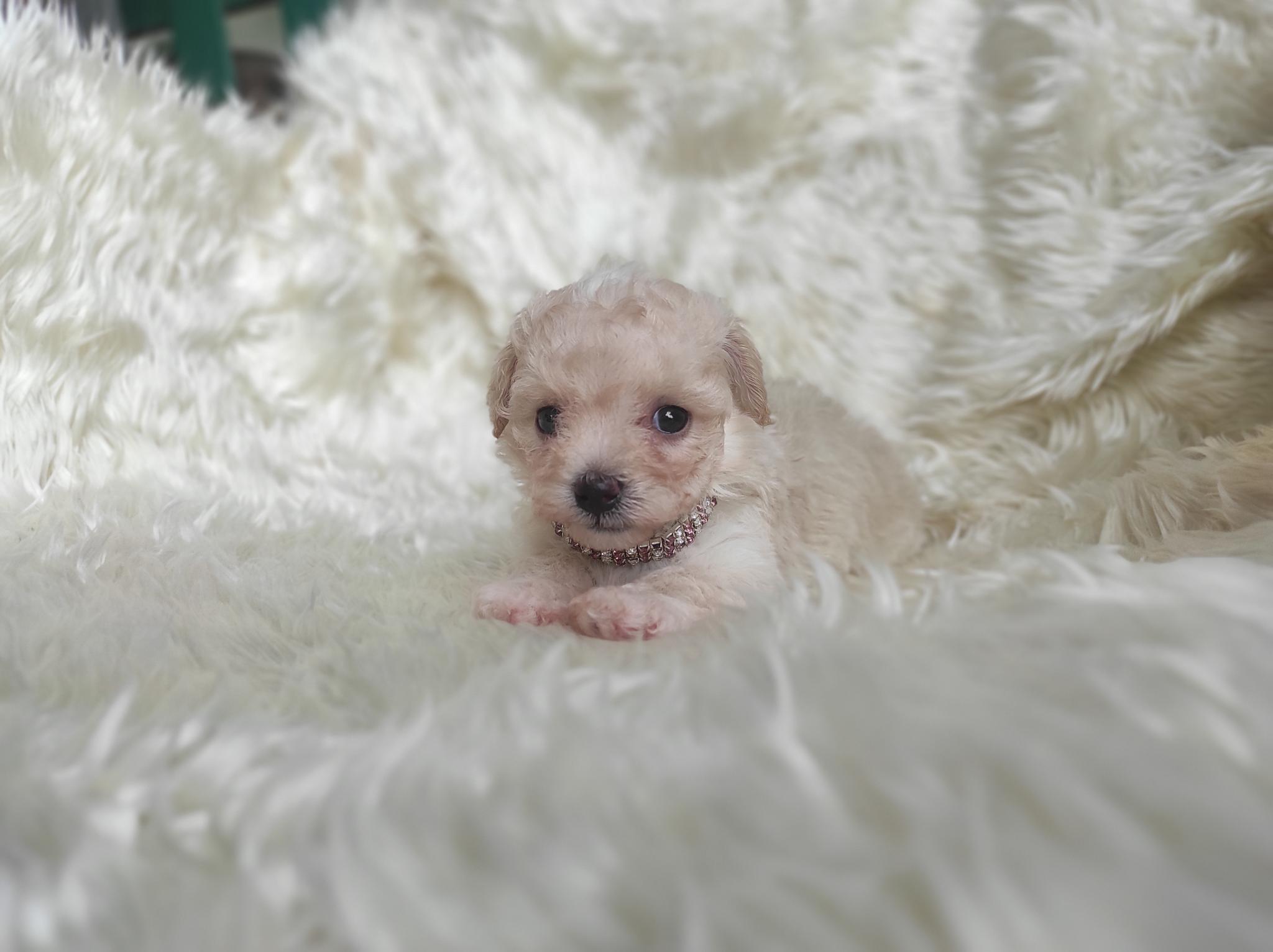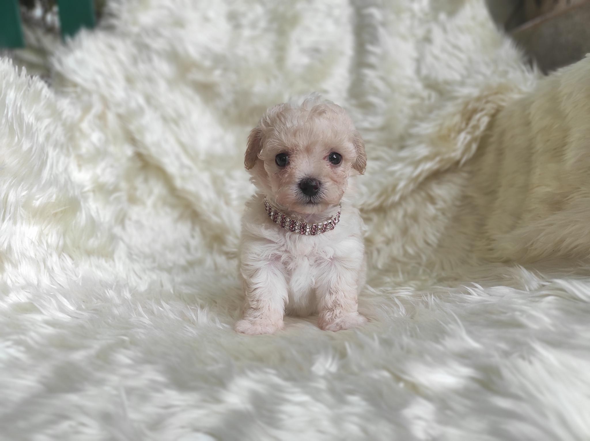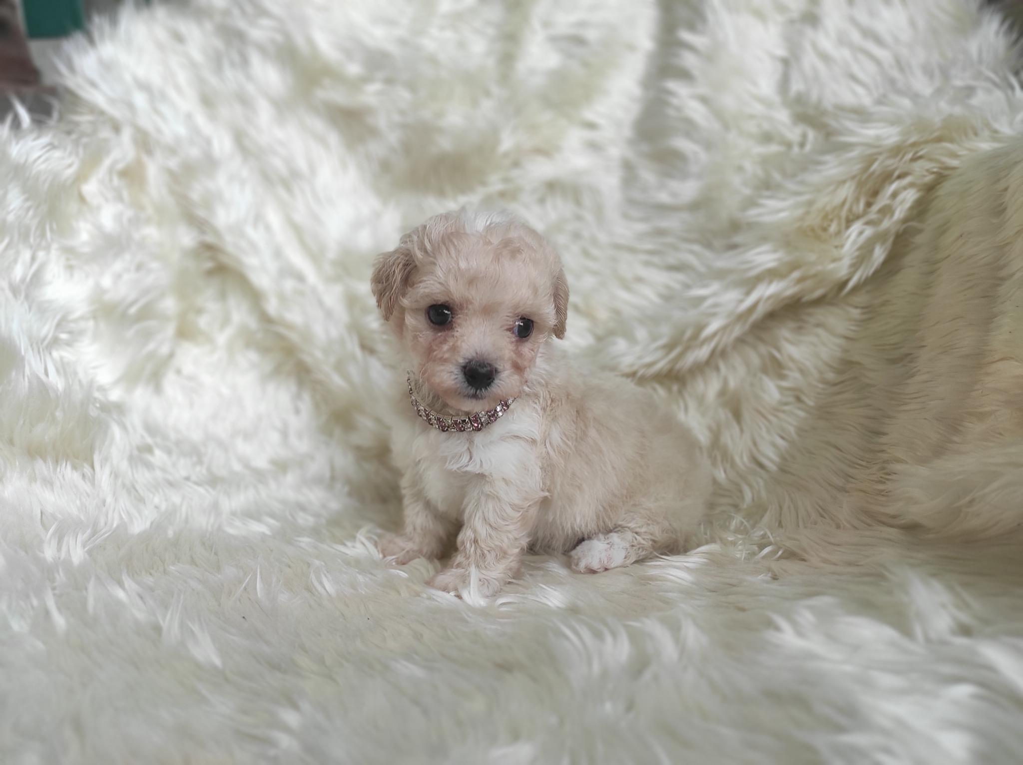 พุดเดิ้ลทอย เพศเมีย ไซด์เล็ก สีขาวครีมขนแน่น หยิก น่ารัก ขี่เล่น