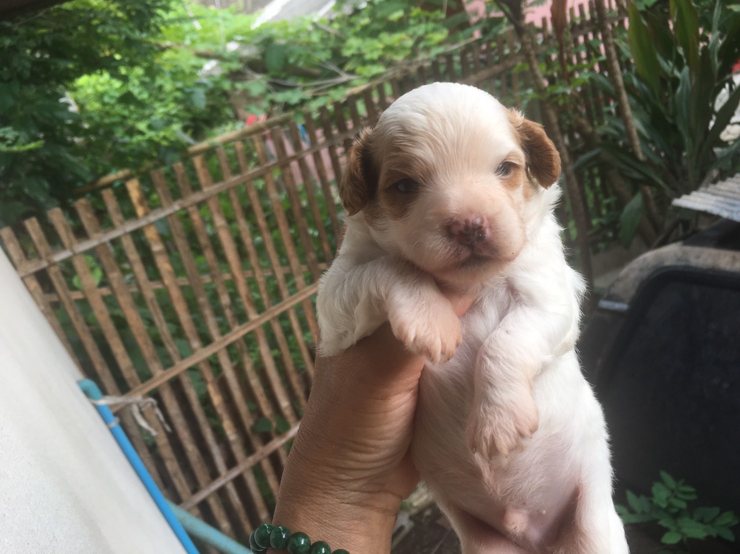 พุดเดิ้นแท้ ้ไซร์ทอย ขนหยิก ผู้ สีขาวและสีน้ำตาล ราคา 5800 ไซร์ทอย