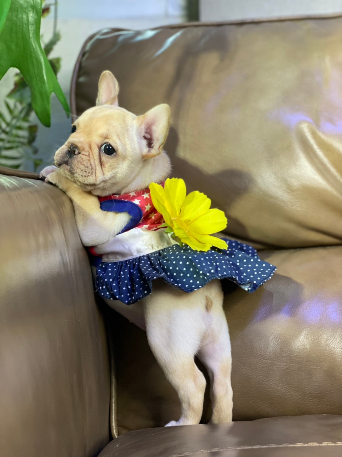 เฟรนช์บลูด็อก เพศเมีย สีครีมหน้าสั้น ใบหูสั้น ขี้เล่น ทรงสวย อายุ 2 ดือน เฟรนช์บลูด็อก เฟรนช เฟรน