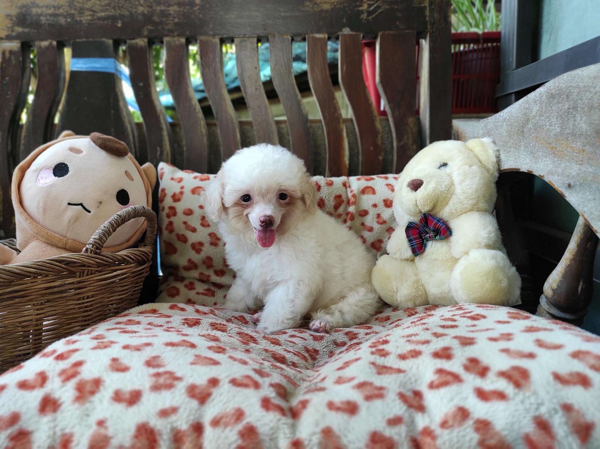 พุดเดิ้ลทอย เพศเมีย ไซด์ทอยขนแน่นหยิก น่ารัก ขี่เล่น วัคซีน1เข็ม