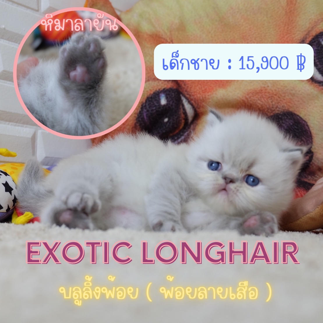 เอ็กซ์โซติกลองแฮร์ ขนยาวสีหิมาลายันลิ้งซ์พ้อย Exotic longhair (colour point) Himalayan lynx point
