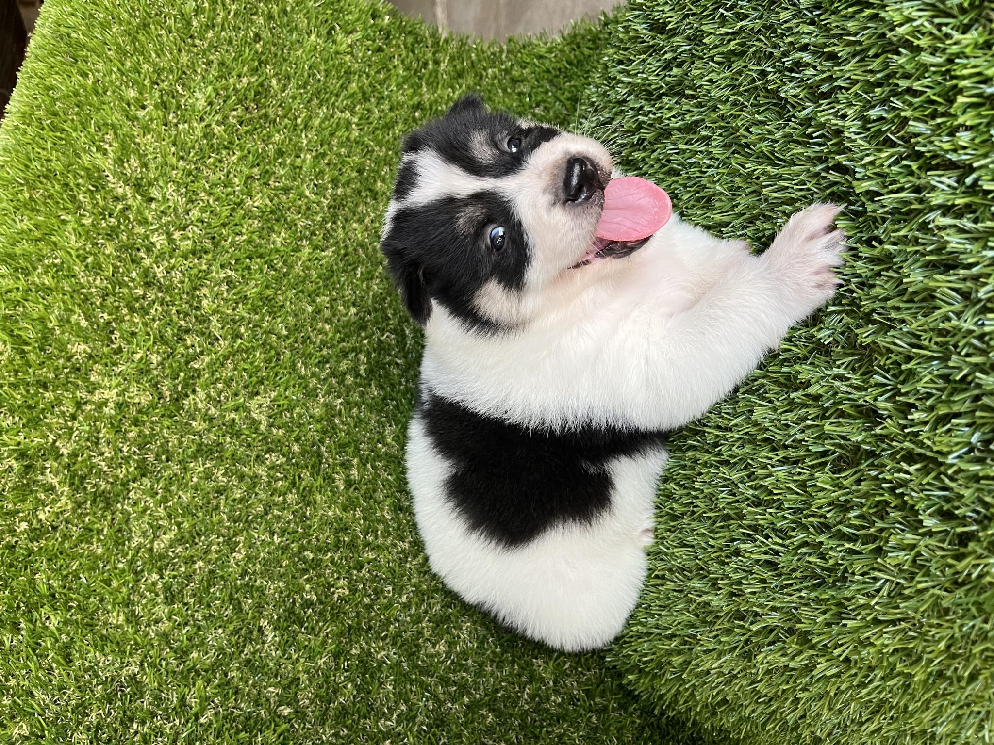 ลูกสุนัขบางแก้วสีขาวดำสีขาวเทาหุ่นเท่ๆ📲0892255289หมี