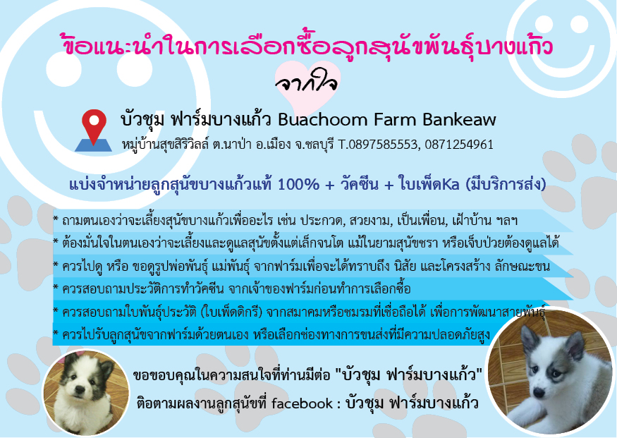 * ทางฟาร์มไม่รับจองลูกสุนัขด้วยวาจา เพื่อโอกาสในการหาบ้านใหม่ของลูกสุนัข