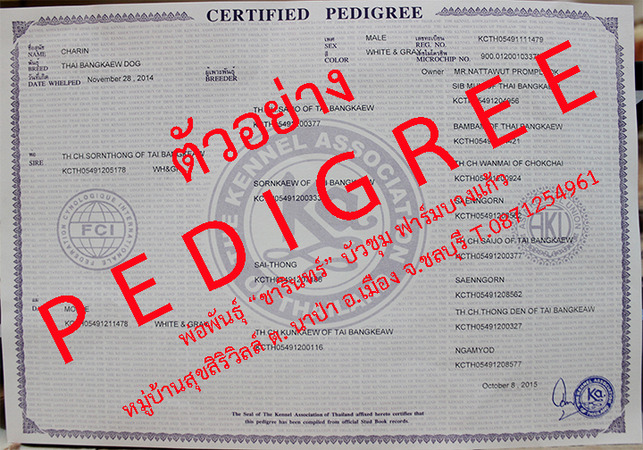 * มีใบพันธุ์ประวัติ (ใบเพ็ดดิกรี) เพื่อการพัฒนาสายพันธุ์