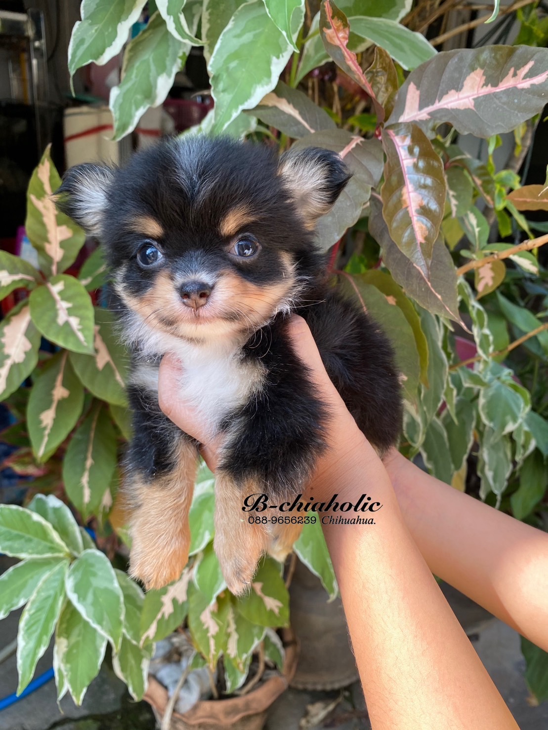 ชิวาวา ขนยาว เพศผู้ สีแบล็คแทน หน้าสั้นแบ๊วๆ