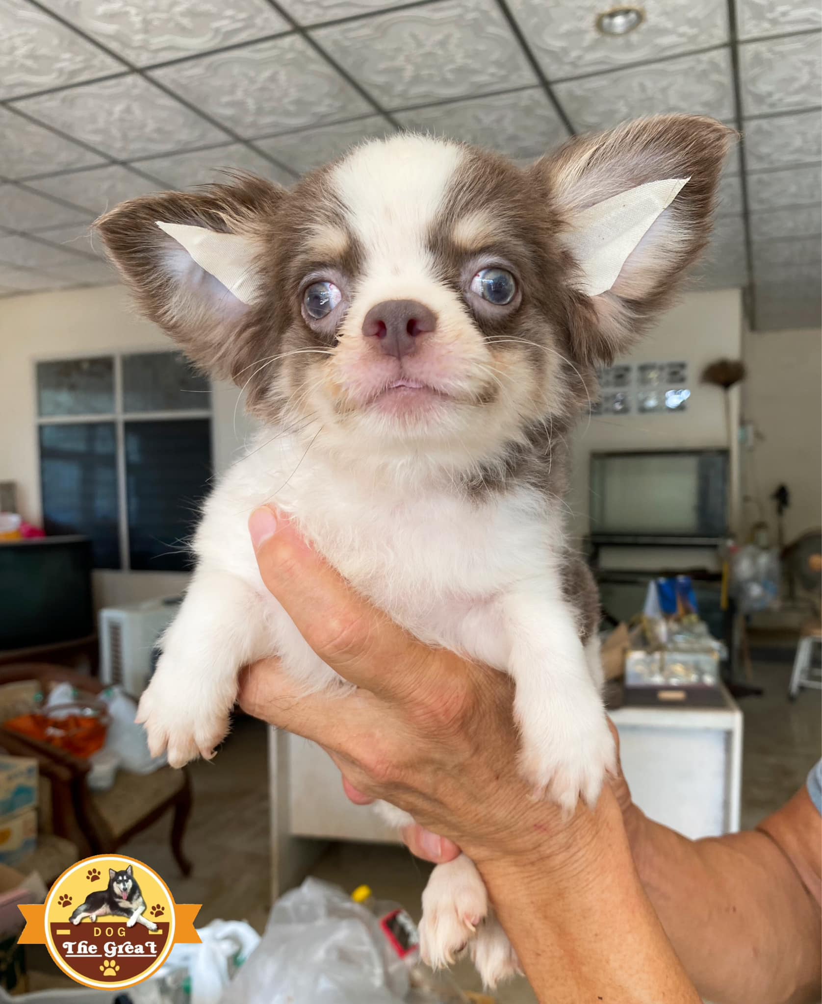 เด็กชายชิวาวา สีขาวบลู ขนยาว มีคิ้ว พร้อมย้ายบ้าน