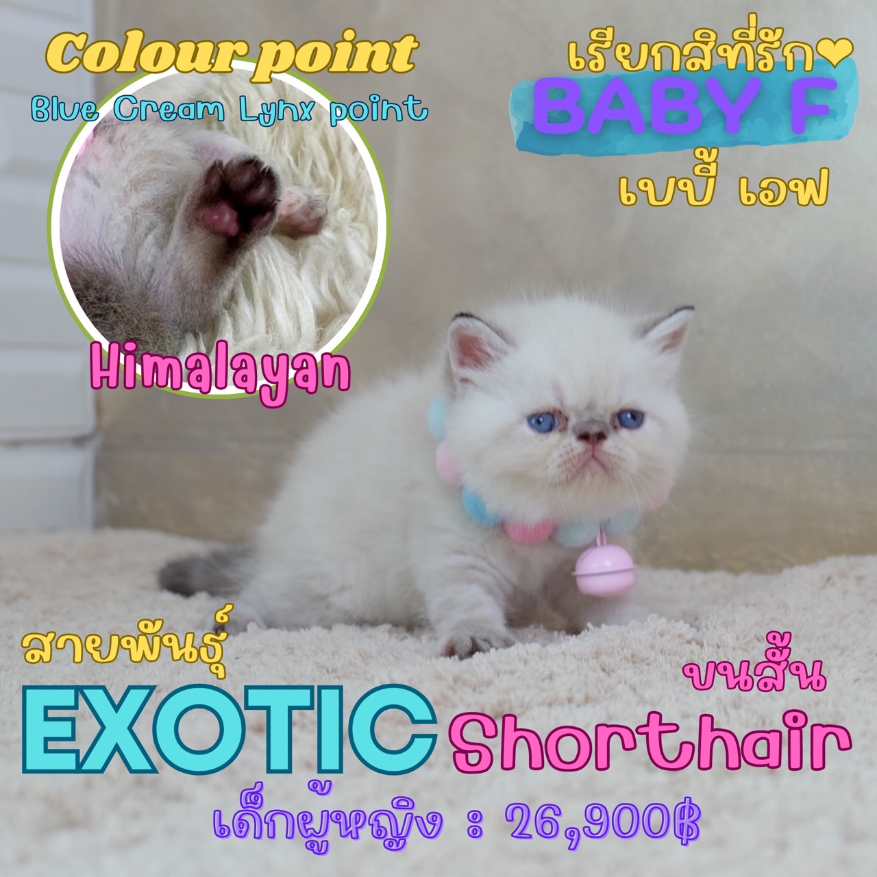 Baby F เด็กหญิง ลูกแมวเอ็กซ์โซติกช็อตแฮร์ Exotic shorthair (colour point) Himalayan หิมาลายัน