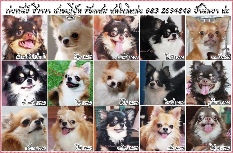 ฟาร์มชิวาวา ขายชิวาวา พ่อพันธุ์ชิวาวา รับผสม นนทบุรี. ฟาร์มชิวาวาซิตี้ นนทบุรี ก่อตั้งมานานกว่า 20 ปี เรานำเข้า พ่อพันธ์ุ และ แม่พันธุ์ ชิวาวา สายพันธุ์ดี มาจากประเทศญี่ปุ่น นำมาผสม และพัฒนาสายพันธุ์ จนได้เด็กชิวาวา ที่มีคุณลักษณะที่สวยงาม ถูกต้อง ตามหลักสายพันธุ์ การันตรีได้จากรางวัลชนะเลิศ ระดับประเทศ และ ตำแหน่ง ไทยแลนด์แชมป์ จากการประกวดหลากหลายสนาม ฟาร์มของเราให้บริการ จำหน่ายลูกสุนัขชิวาวาสวยๆ สายแชมป์ จาก JAPAN เกรดประกวด ทุกตัวพันธ์แท้ 100% มีใบเพ็ดดีกรี จากสมาคมพัฒนาพันธุ์สนัขแห่งประเทศไทย เด็กๆฉีดวัคซีนครบตาม มาตราฐานสุขภาพ น้องๆแข็งแรง น่ารัก ไซส์เล็กจิ๋วๆ ช่วงตัวสั้น เตี้ย หัวแอ๊บเปิ้ล ขนแน่นๆ ทำให้คุณได้ชิวาวาที่มีคุณภาพแน่นอน และ ทางฟาร์มยังมี พ่อพันธ์นำเข้า สวยๆ เปิดรับผสม ให้ลูกค้าที่สนใจต้องการพัฒนาสายพันธุ์ด้วยนะคะ ที่ตั้งฟาร์ม หมู่บ้าน ประชาชื่น ถนน สามัคคี ตำบล บางตลาด อำเภอ ปากเกร็ด จังหวัด นนทบุรี. โทรติดต่อ ป้านิตยา และ คุณแจ๊ค เจ้าของฟาร์ม ได้ที่เบอร์ 083 2694848 , 081 8932937 ทางฟาร์มใจดี ยินดีให้คำปรึกษา ค่ะ ด้วยประสบการณ์กว่า 20 ปีค่ะ