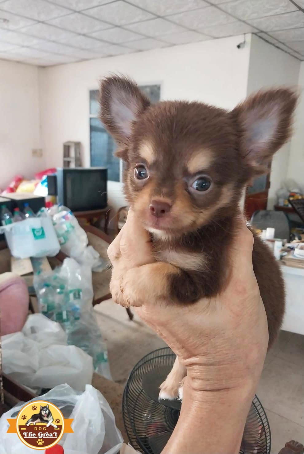 เด็กชายชิวาวา สีชอคแทน ขนสองชั้นยาว พร้อมทัก