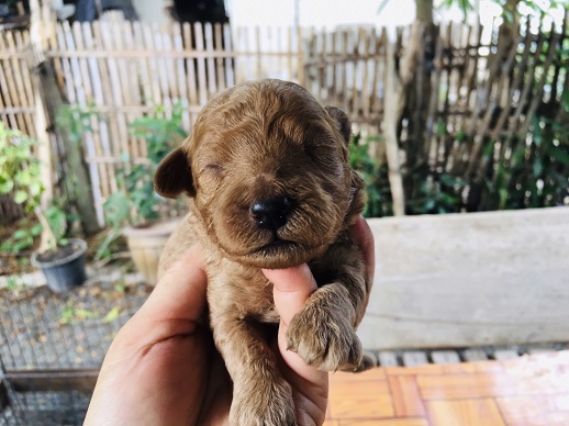 พุดเดิ้นแท้ ้ไซร์ทอย ขนหยิก สีเข้ม ตัวเมีย และ ผุ้ ไซต์ทอยคะ สีน้ำตาล ราคา 3800ไซร์เล็ก