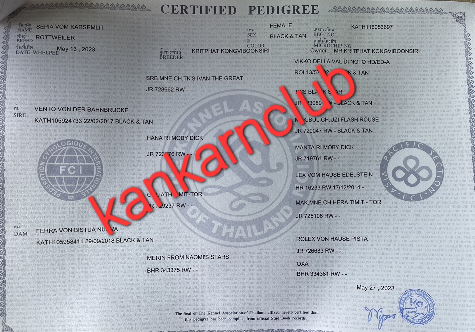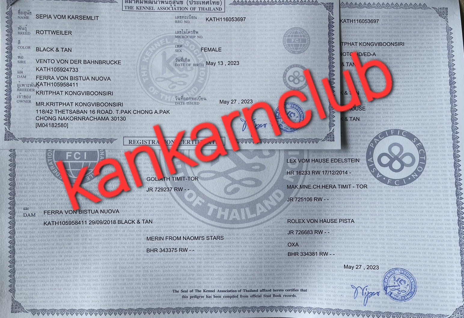 ลูกสุนัขร็อตไวเลอร์ สวยแชมป์ มีใบเพ็ดดีกรี พ่อ แม่ นำเข้านอก จาก kankarnclub มีจัดส่งทั่วประเทศ(กัน