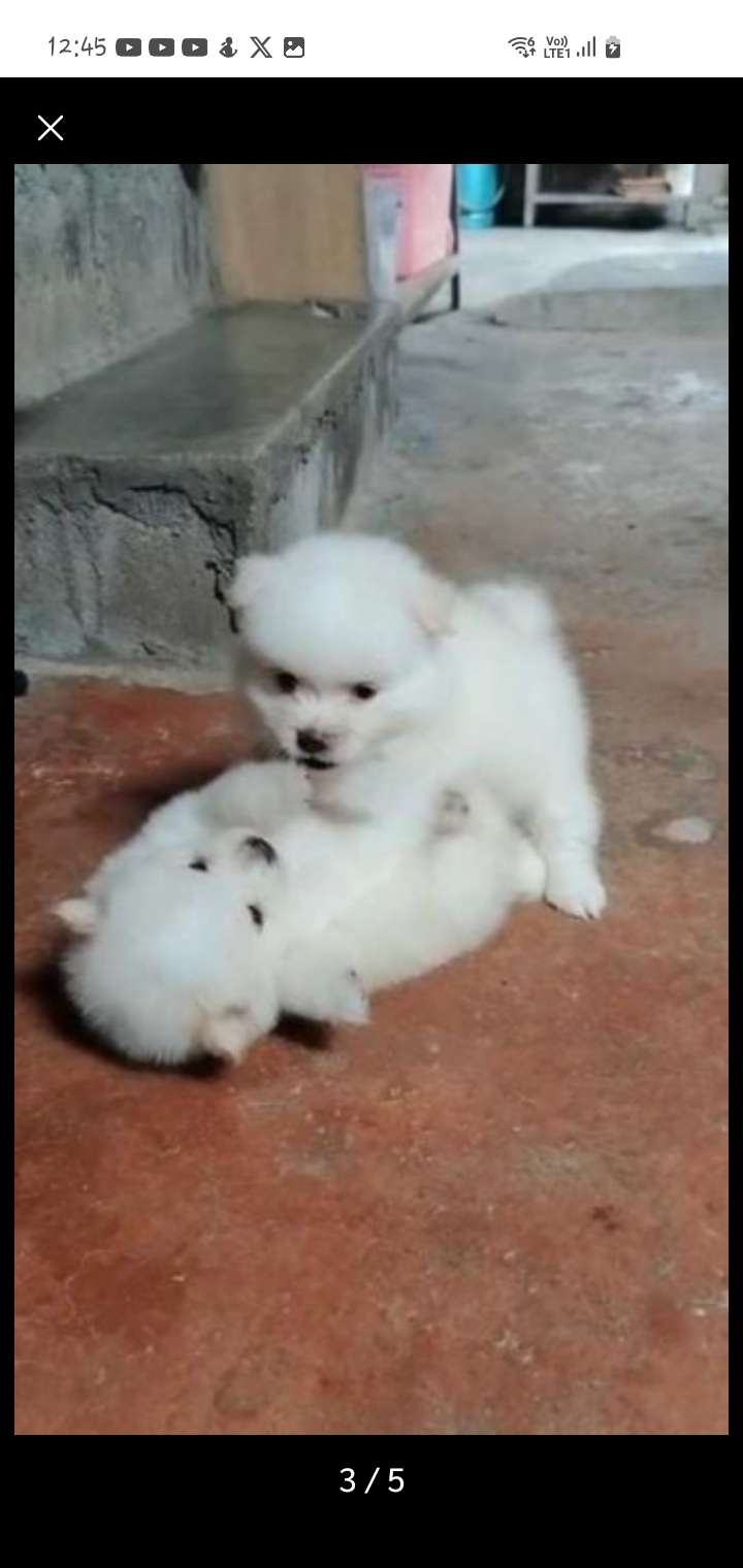 ขายลูกสุนัขปอมเมอเรเนียนขาว เด็กชาย 2 ตัว อายุ40วัน