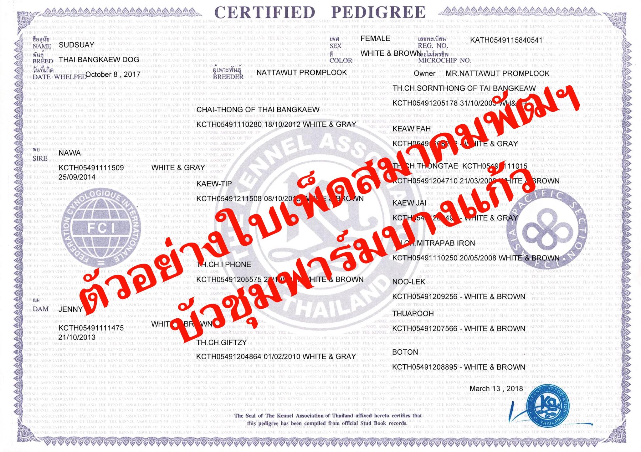 * มีใบพันธุ์ประวัติ (ใบเพ็ดดิกรี) เพื่อการพัฒนาสายพันธุ์