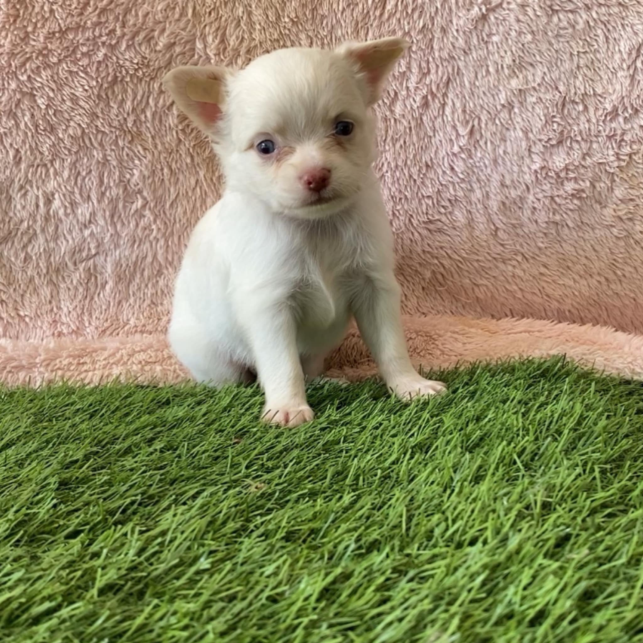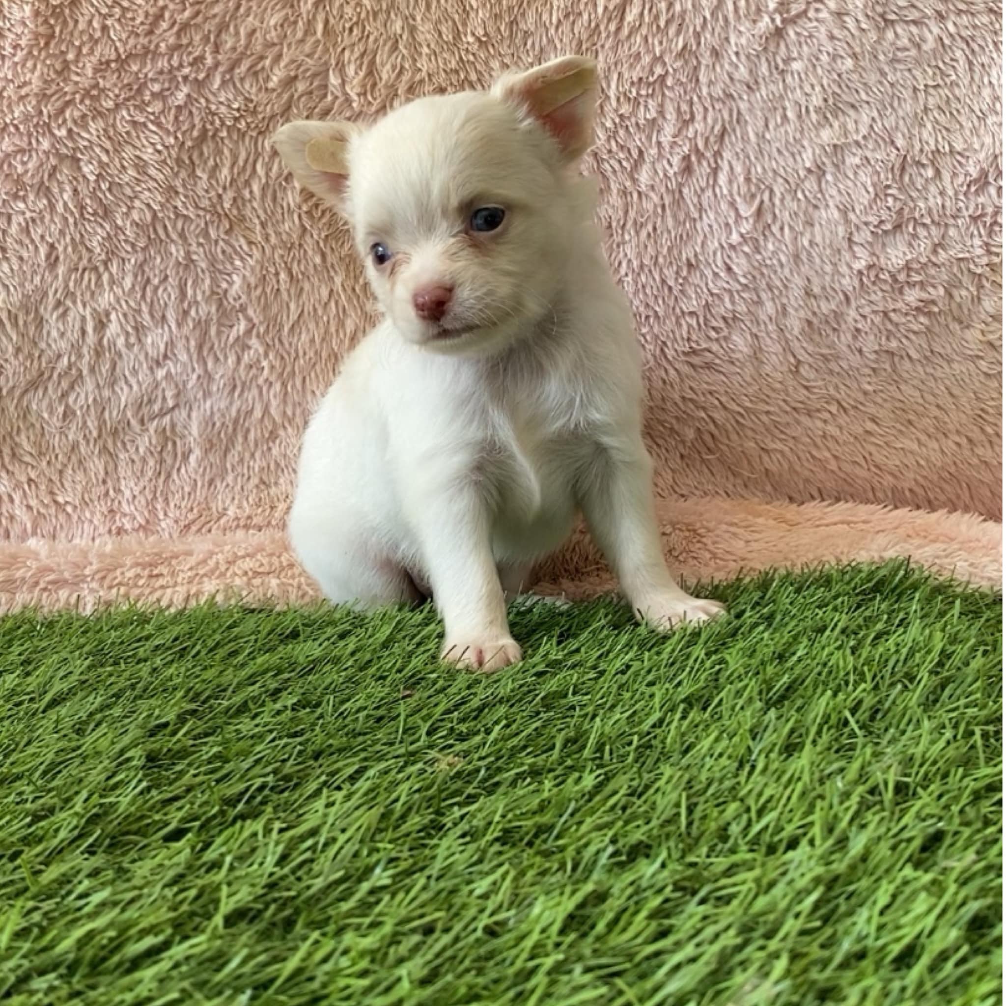 เด็กชายชิวาวา สีขาวล้วนๆทั้งตัว ขนยาว พร้อมให้พี่กอดแล้วค้าบ