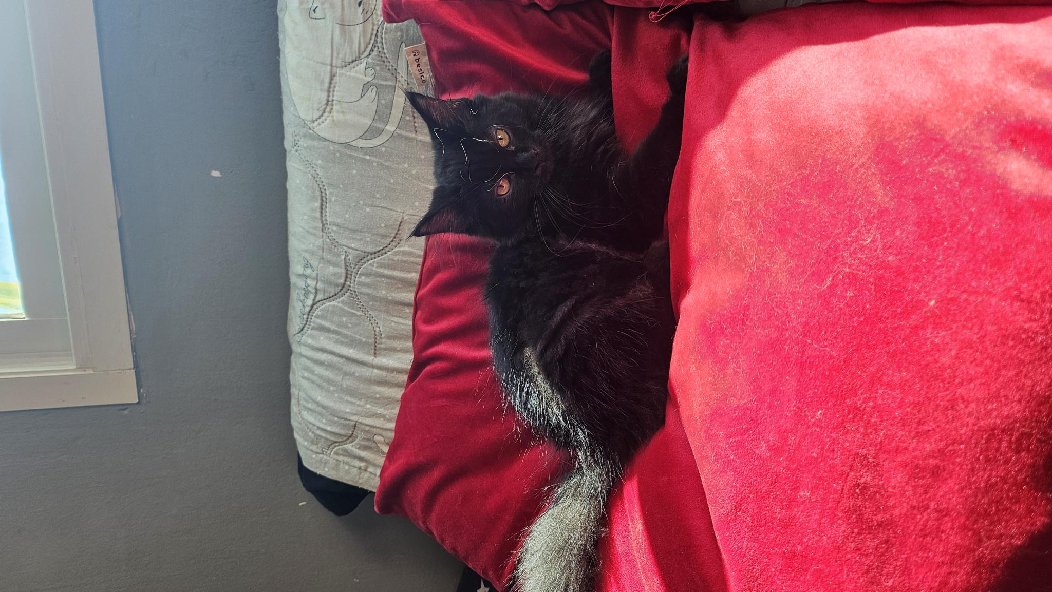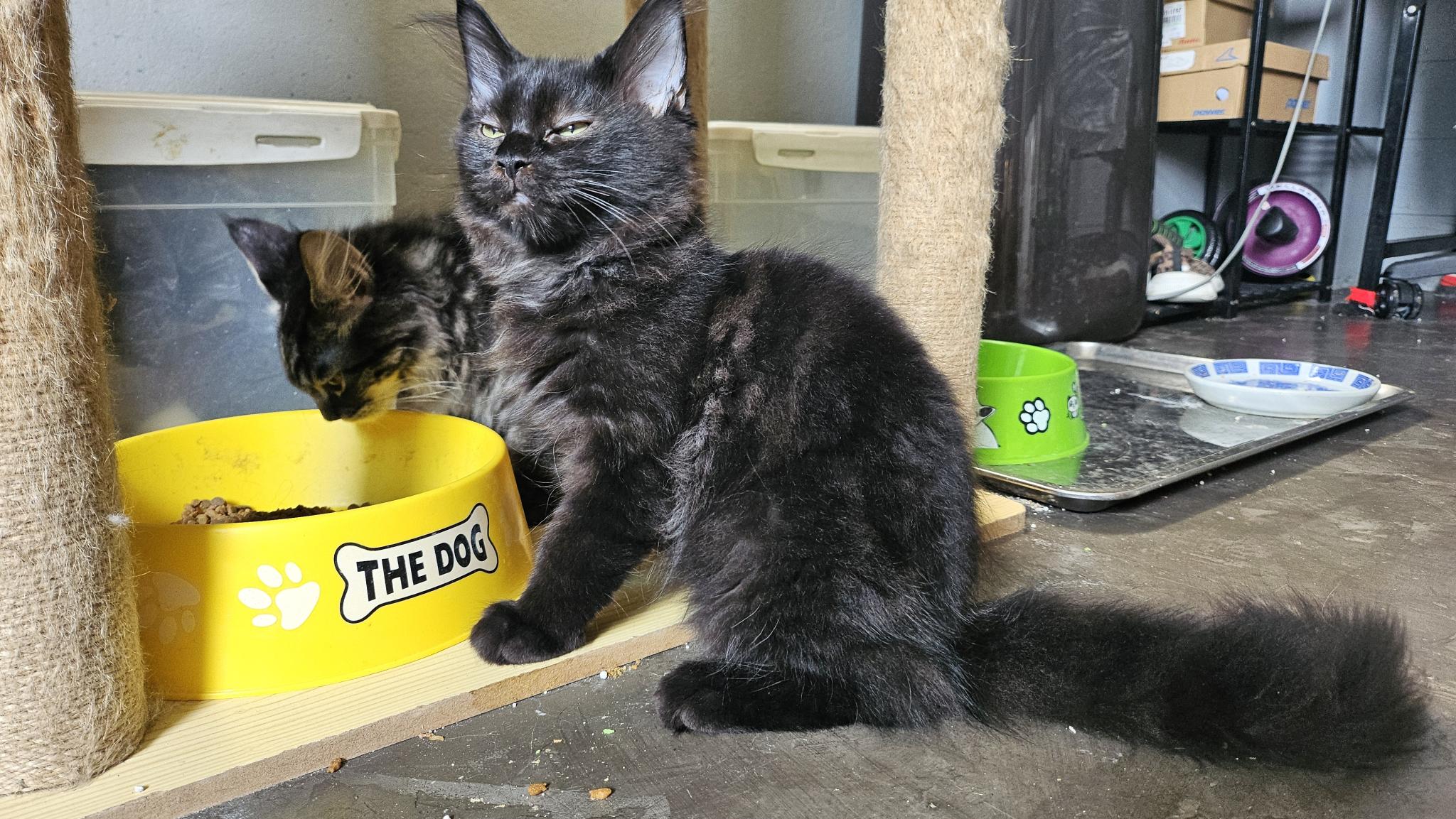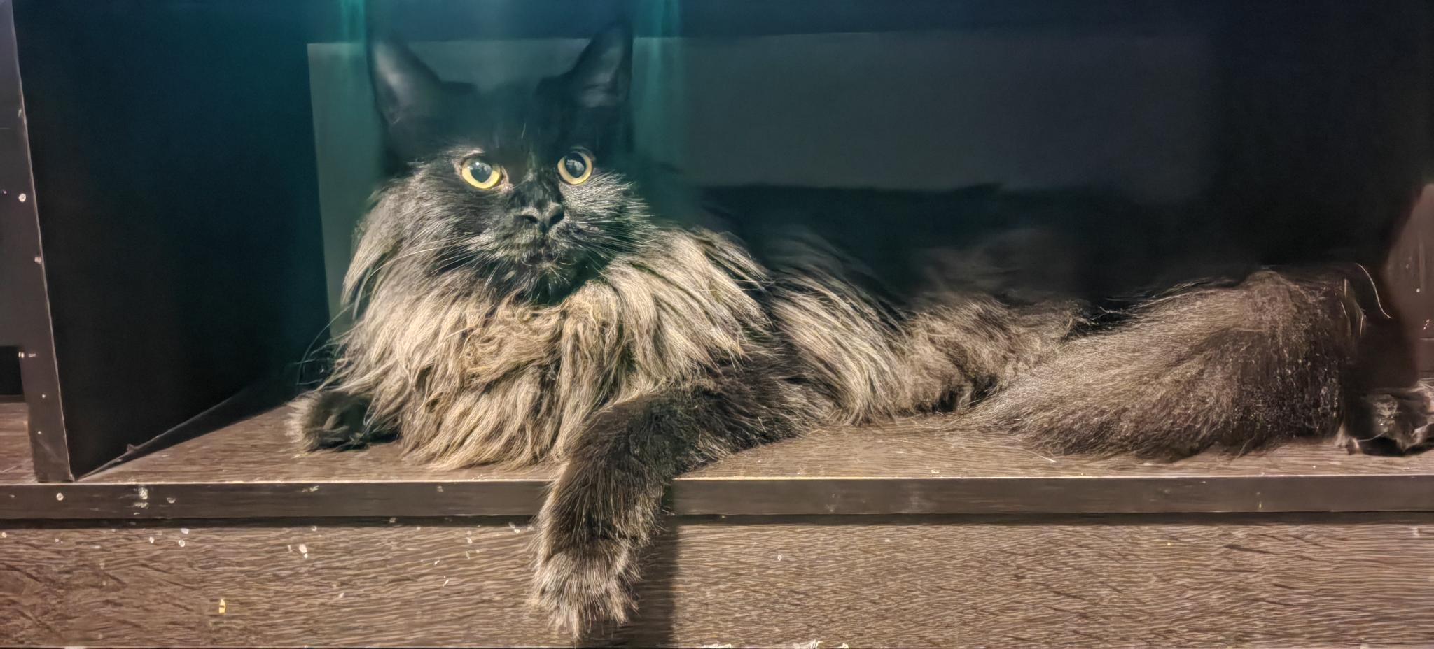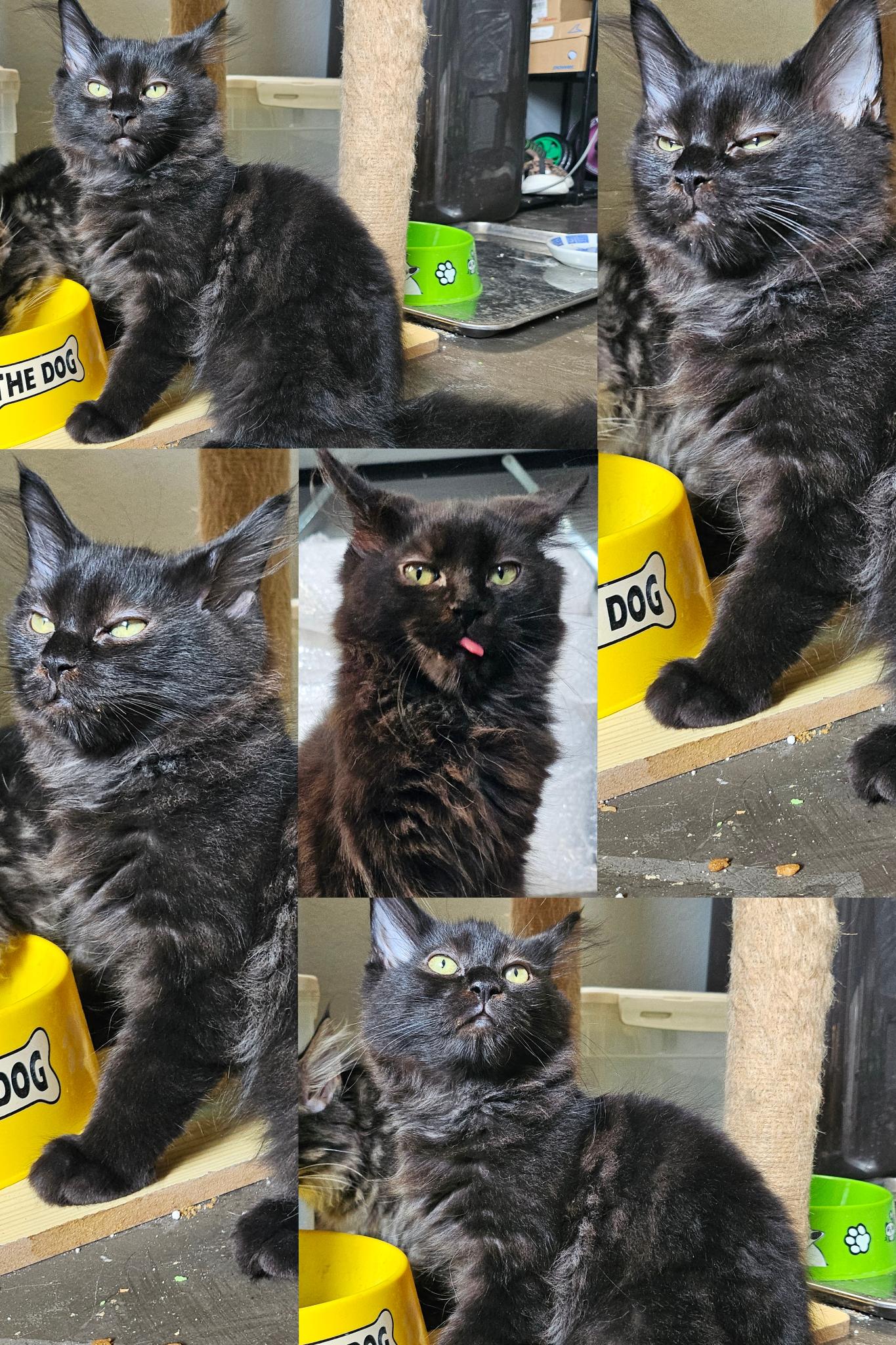 น้องเป็นสีดำล้วน ฉลาดติดคน ชอบกินๆนอนๆเวลากลางวัน กลางคืนตื่นอ้อนคนและชวนเล่น