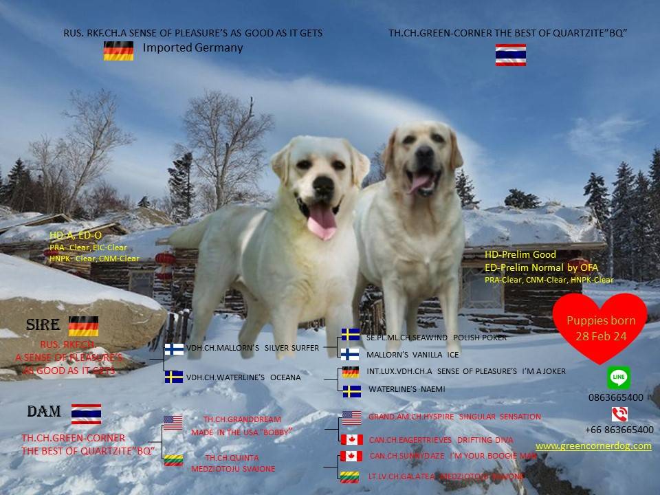 ลูกสุนัขพันธุ์ลาบราดอร์สีเหลือง บ้านกรีนคอร์เนอร์ เกิดปลายกุมภาพันธ์ 2567 นี้