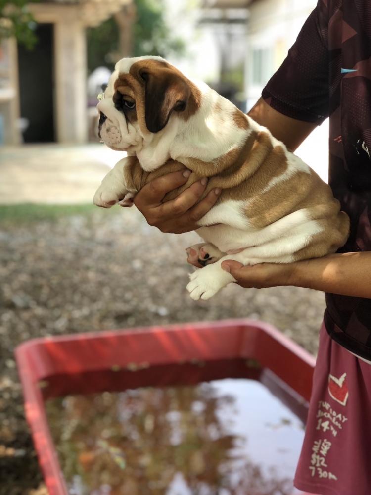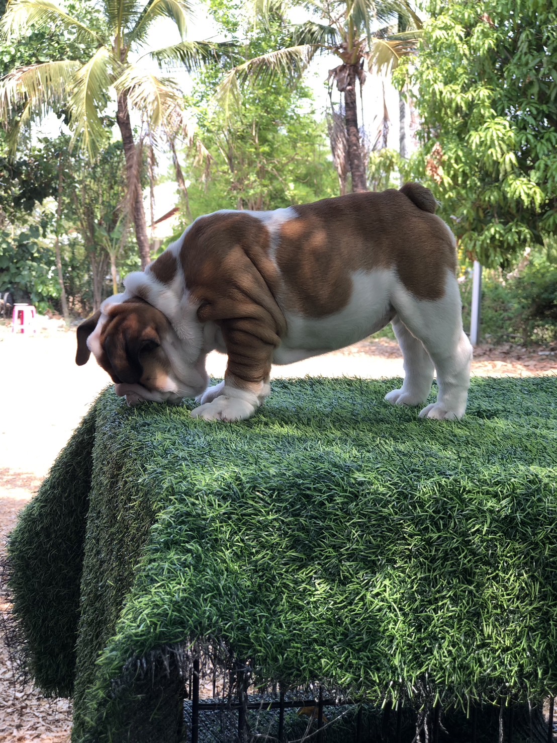 อิงลิชบลูด็อกเด็กหญิงพร้อมใบเพดดีกรี