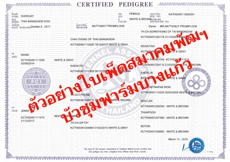 * มีใบพันธุ์ประวัติ (ใบเพ็ดดิกรี) เพื่อการพัฒนาสายพันธุ์