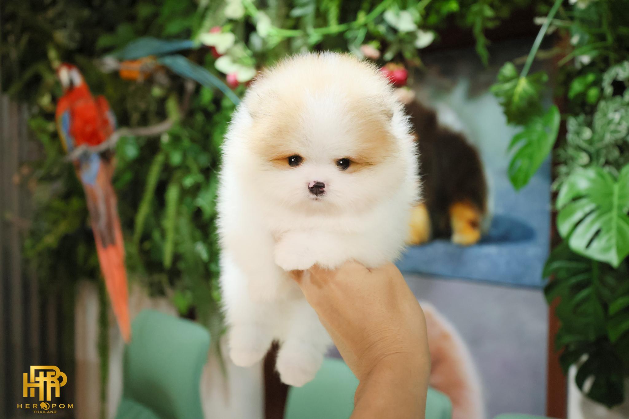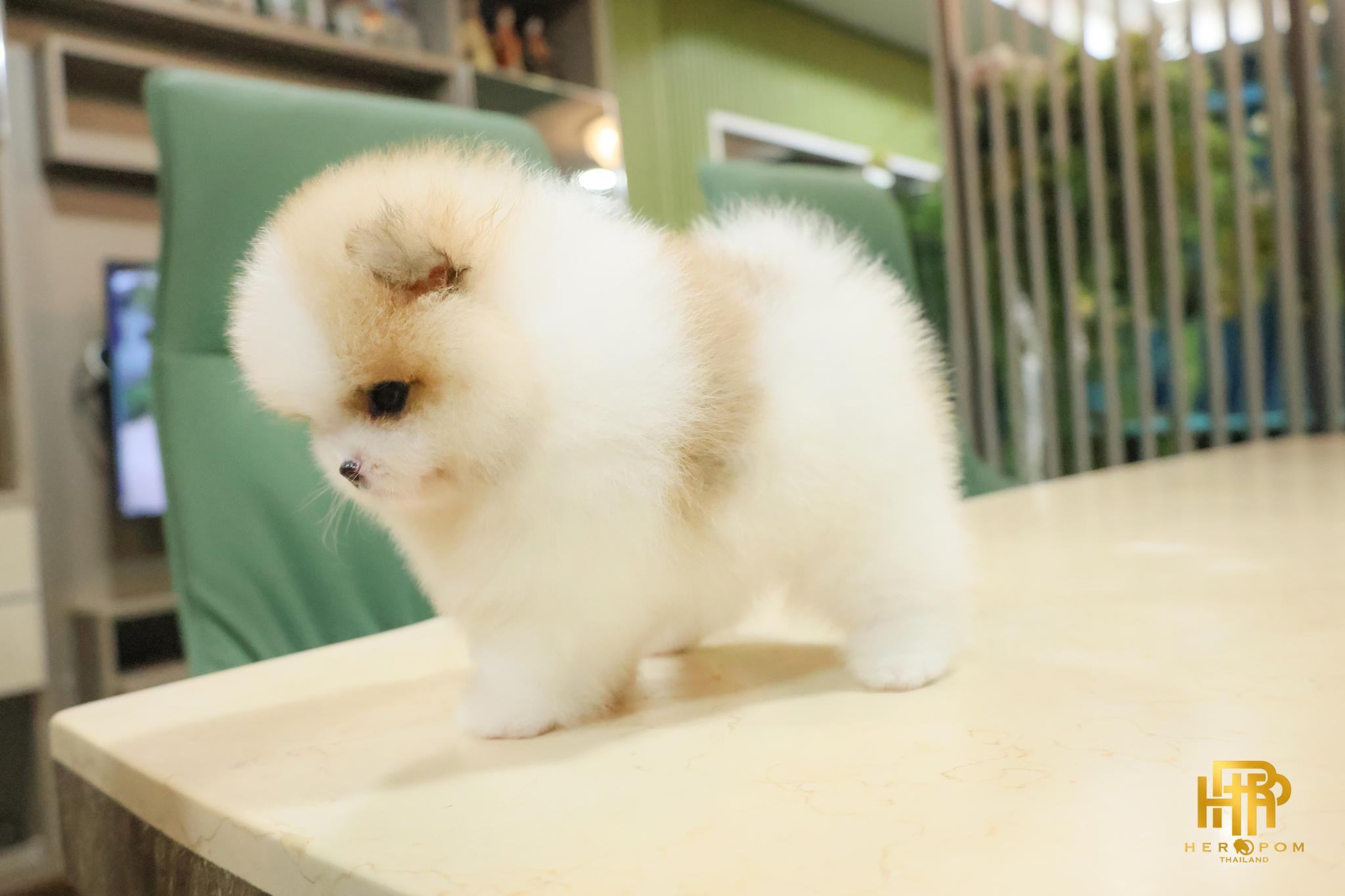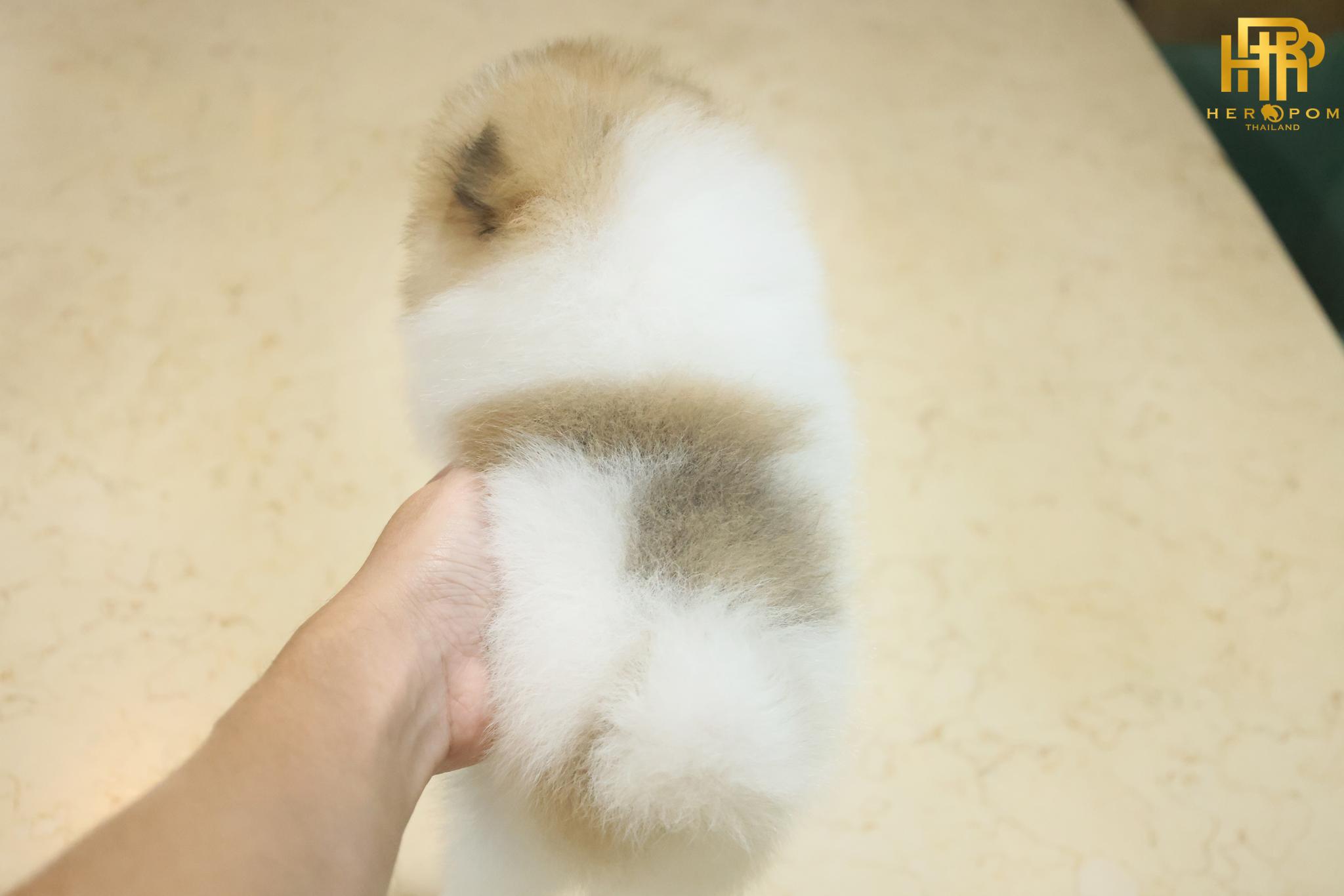 HRM-86050 เพศผู้ สีปาร์ตี้ อายุ 2 เดือน หน้าหมี ขนฟูหนาสวย กระโหลกหนา