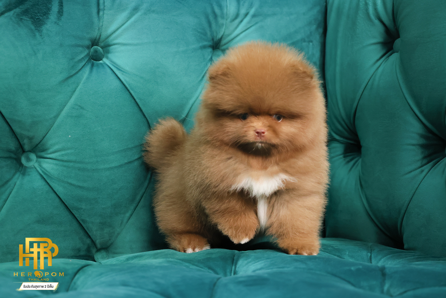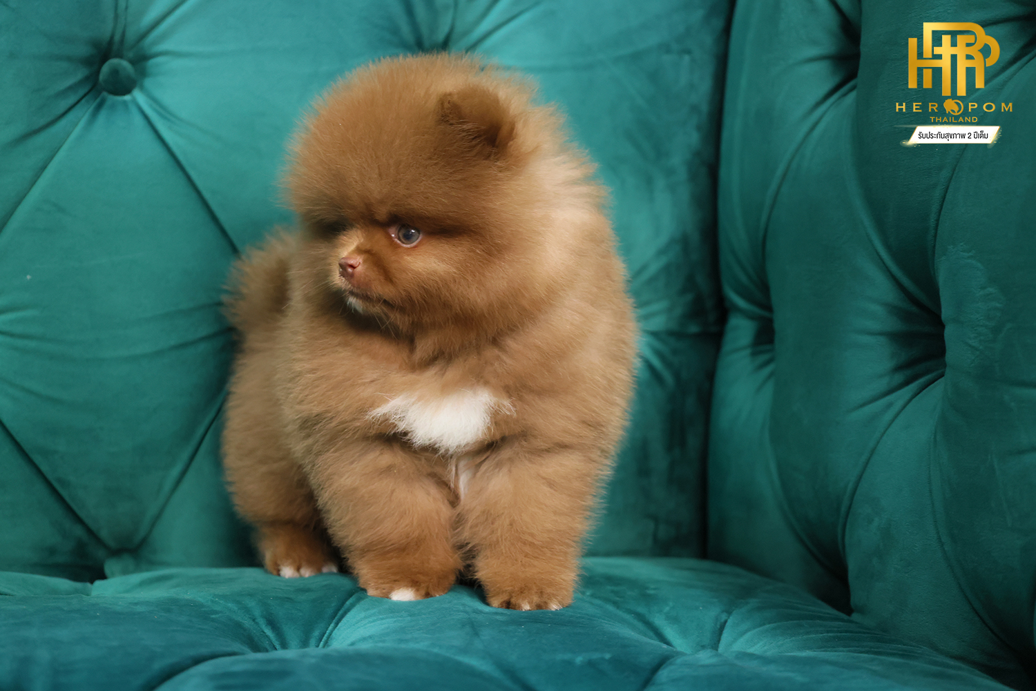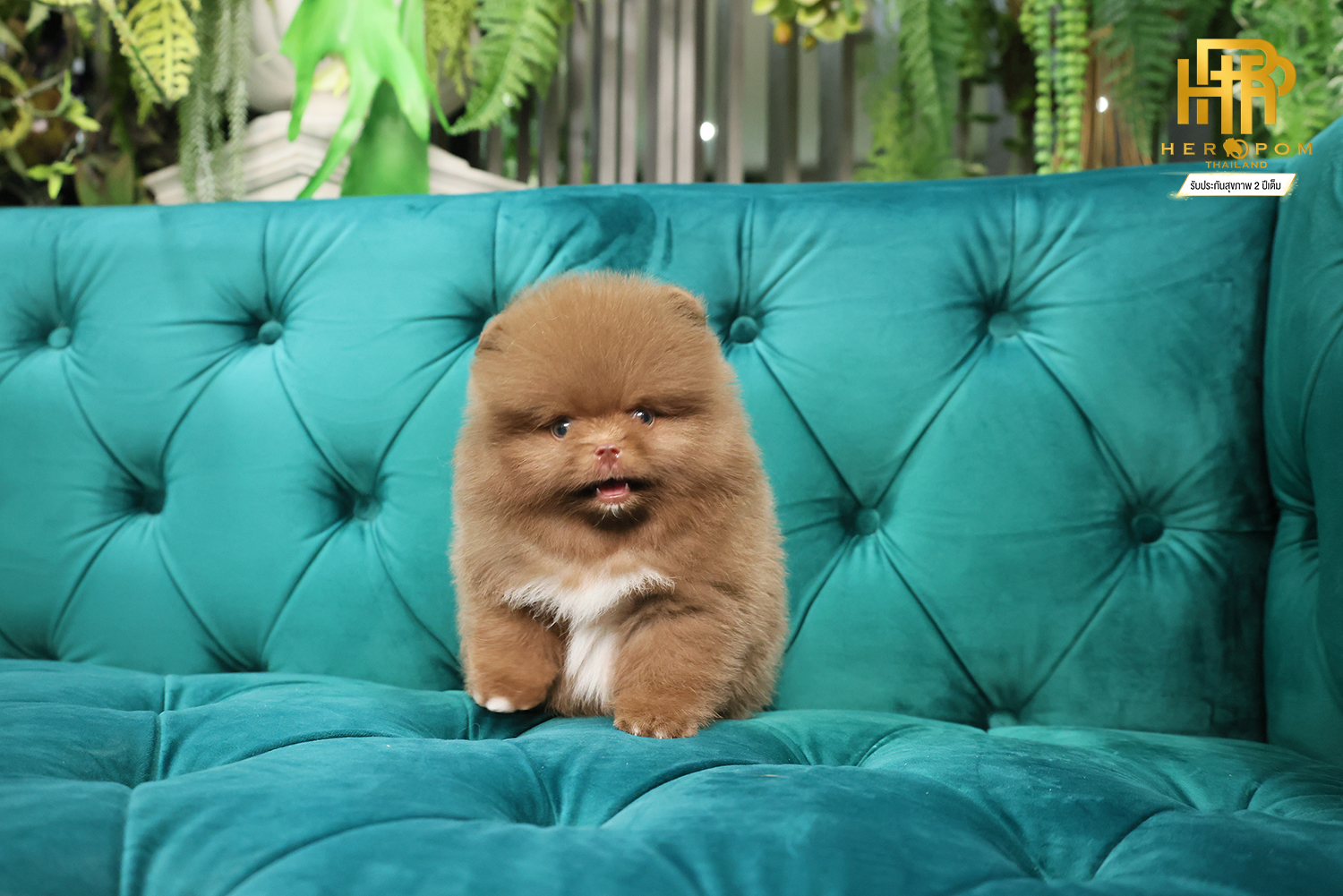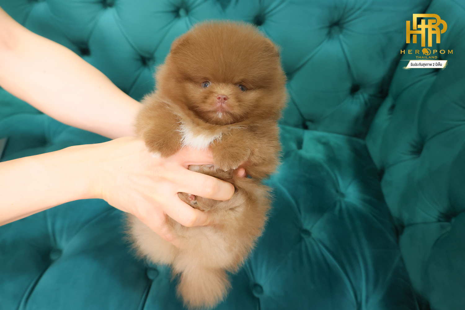 HRM-6844 เพศผู้ สีช็อคโกแลต อายุ 2 เดือน ขนฟูหนาสวย อกขาว น่ารักเวอร์