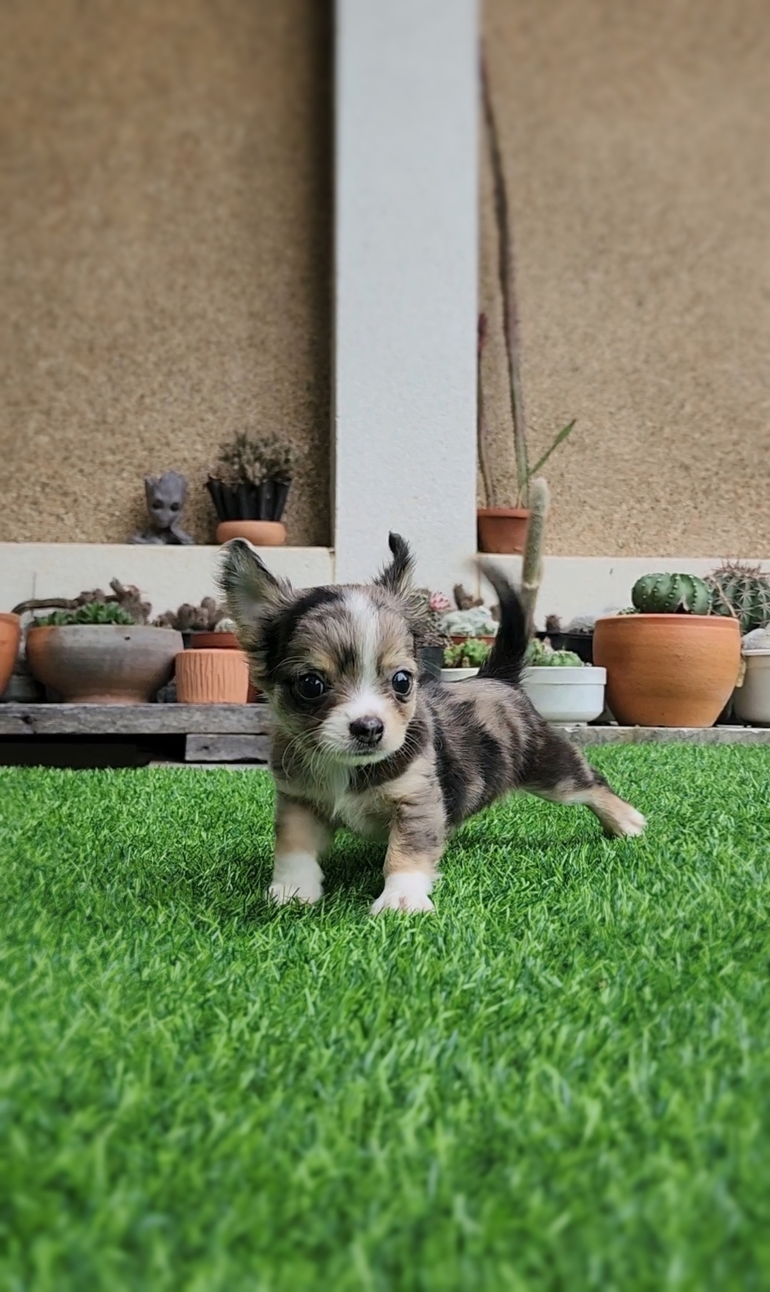 ชิวาวา ขนยาว สีเมอร์ เพศผู้ พร้อมย้ายบ้าน