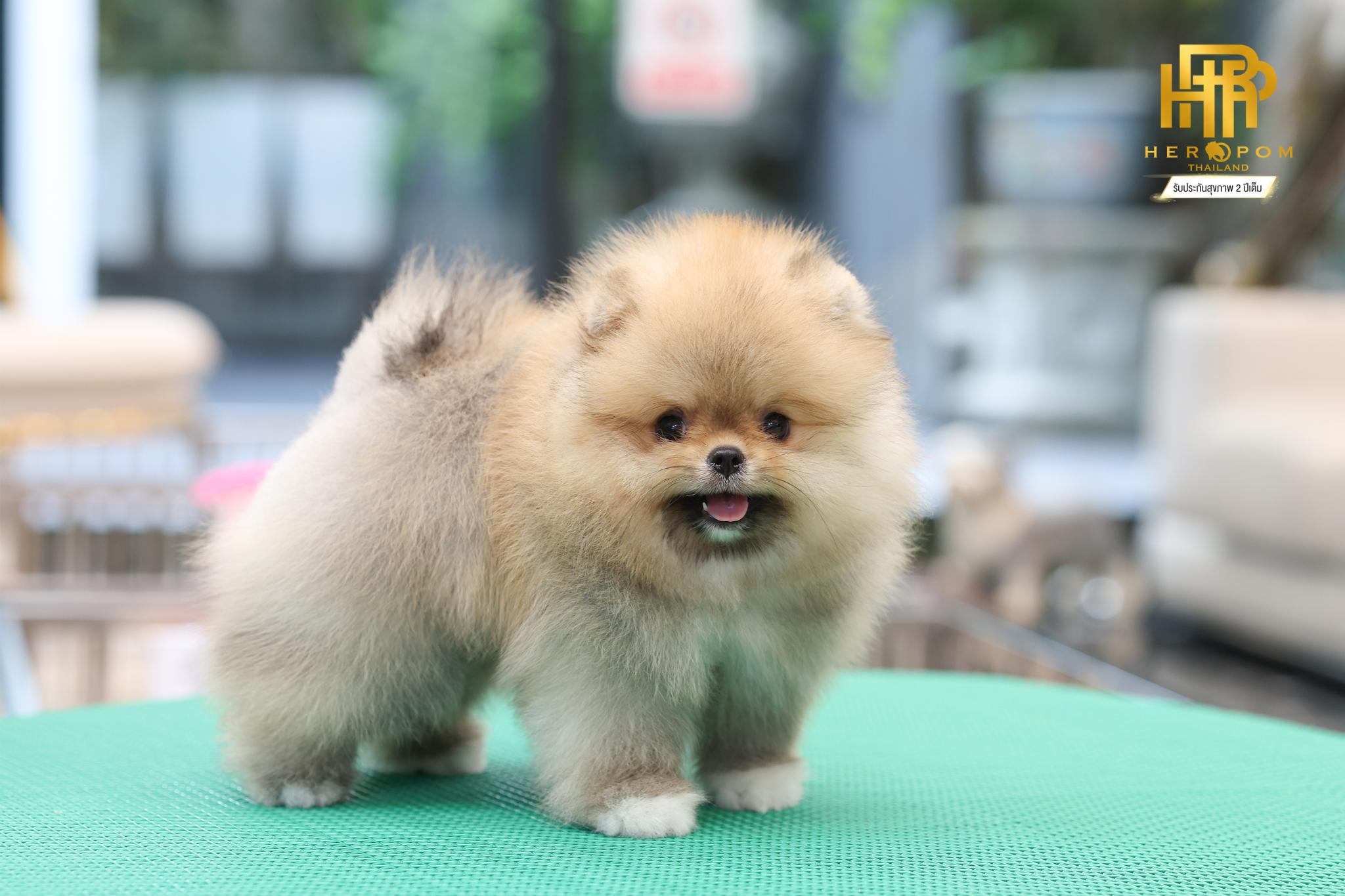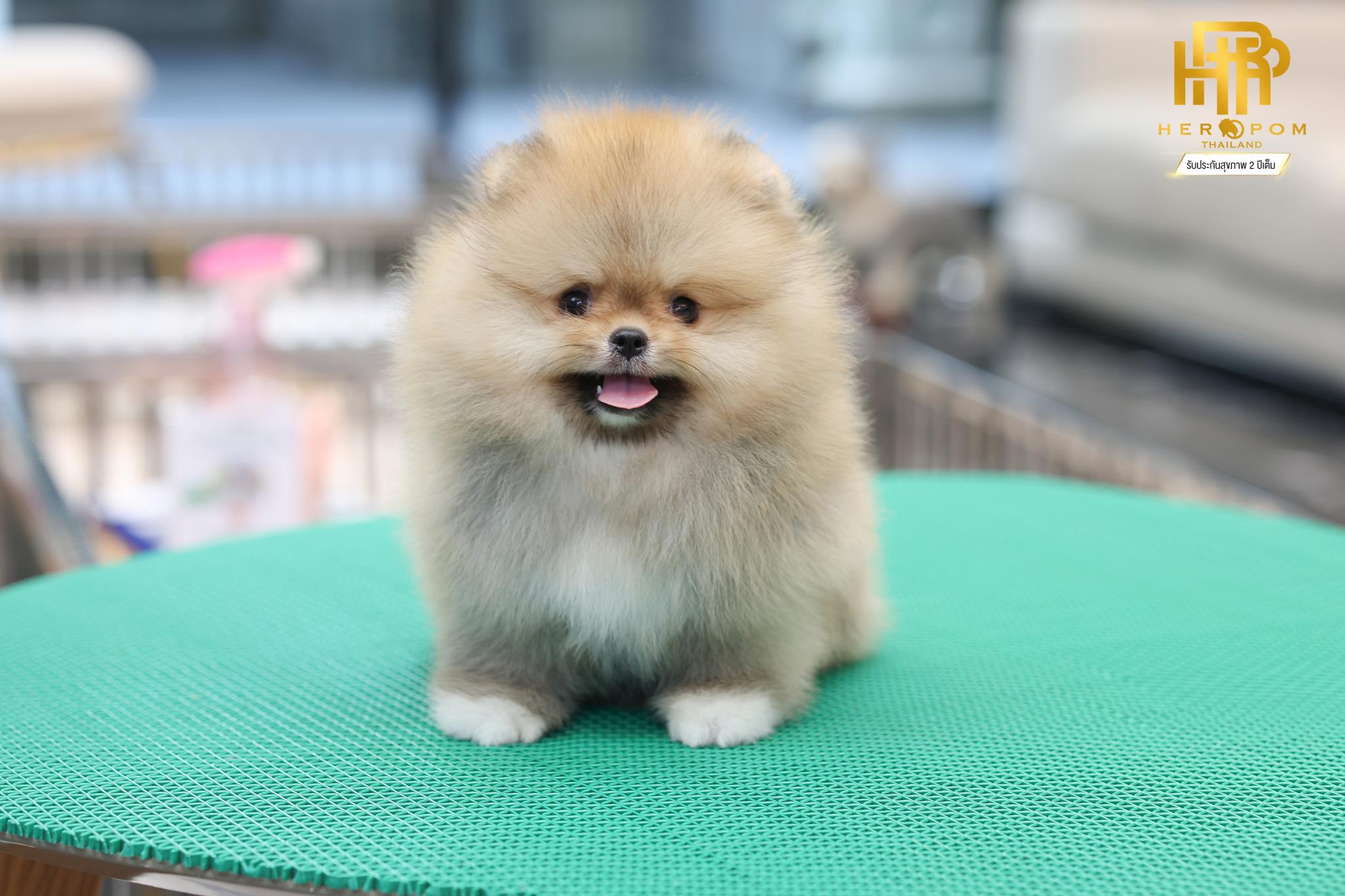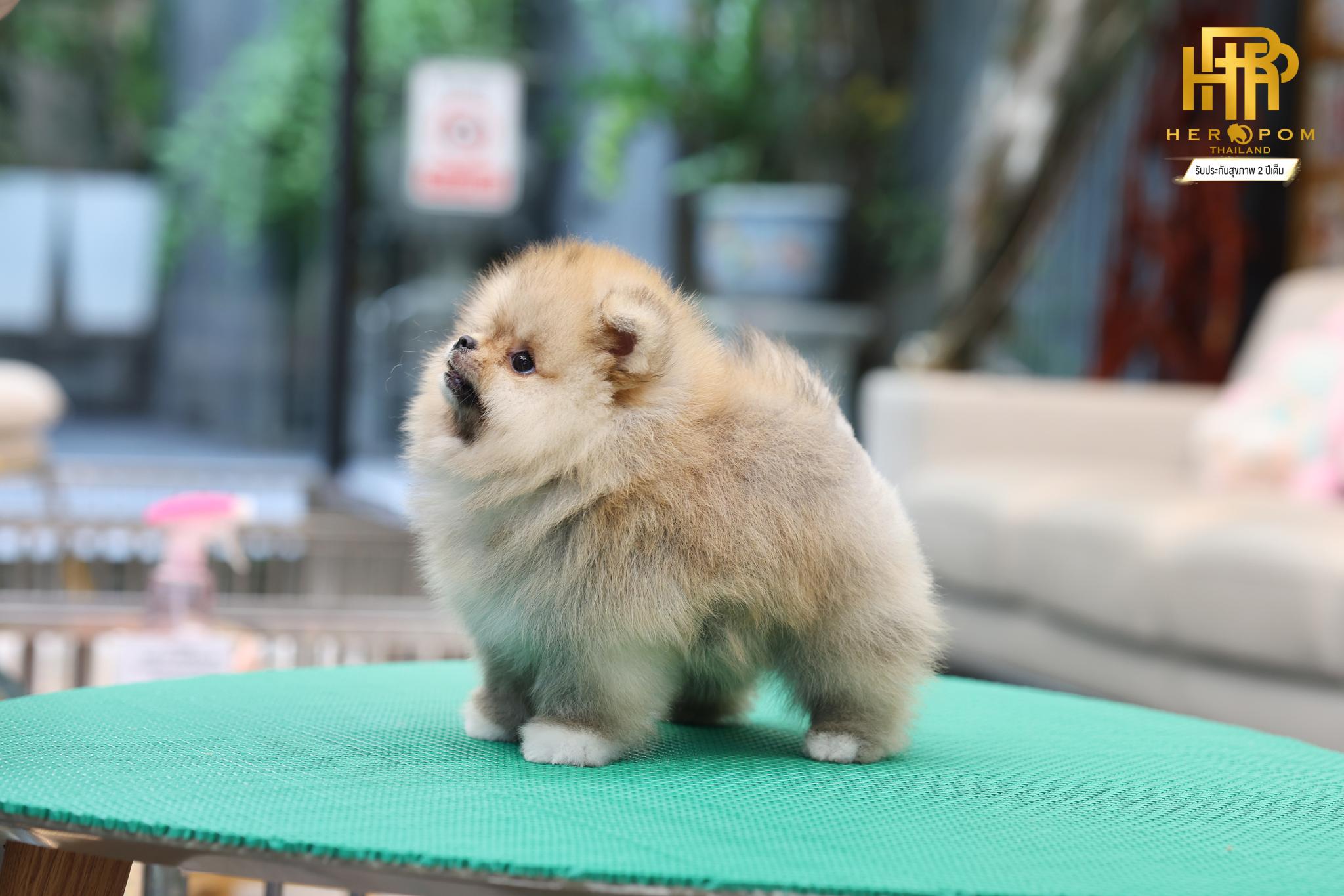 HRM-85264 เพศผู้ สีส้ม อายุ 2 เดือน หน้าหมี ขนเเน่นฟูสวย มีถุงเท้า