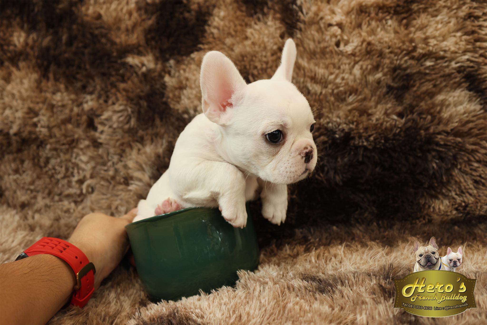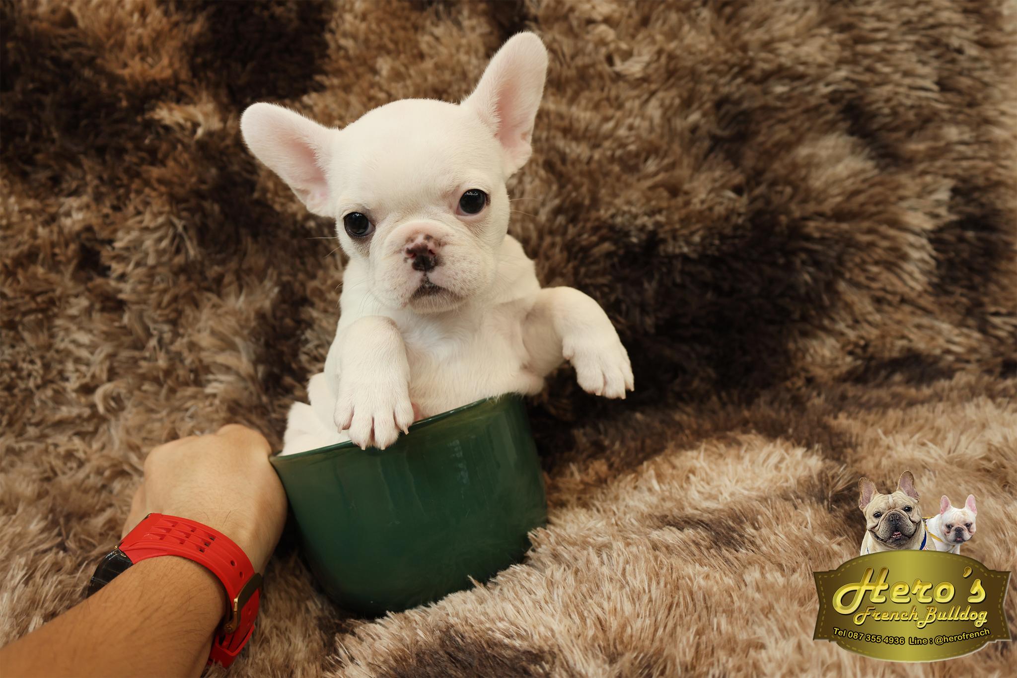 เฟรนช์บลูด็อก เพศเมีย สีขาว หน้าสั้น ใบหูสั้น ขี้เล่น ทรงสวย อายุ 2 ดือน เฟรนช์บลูด็อก เฟรนช เฟรน