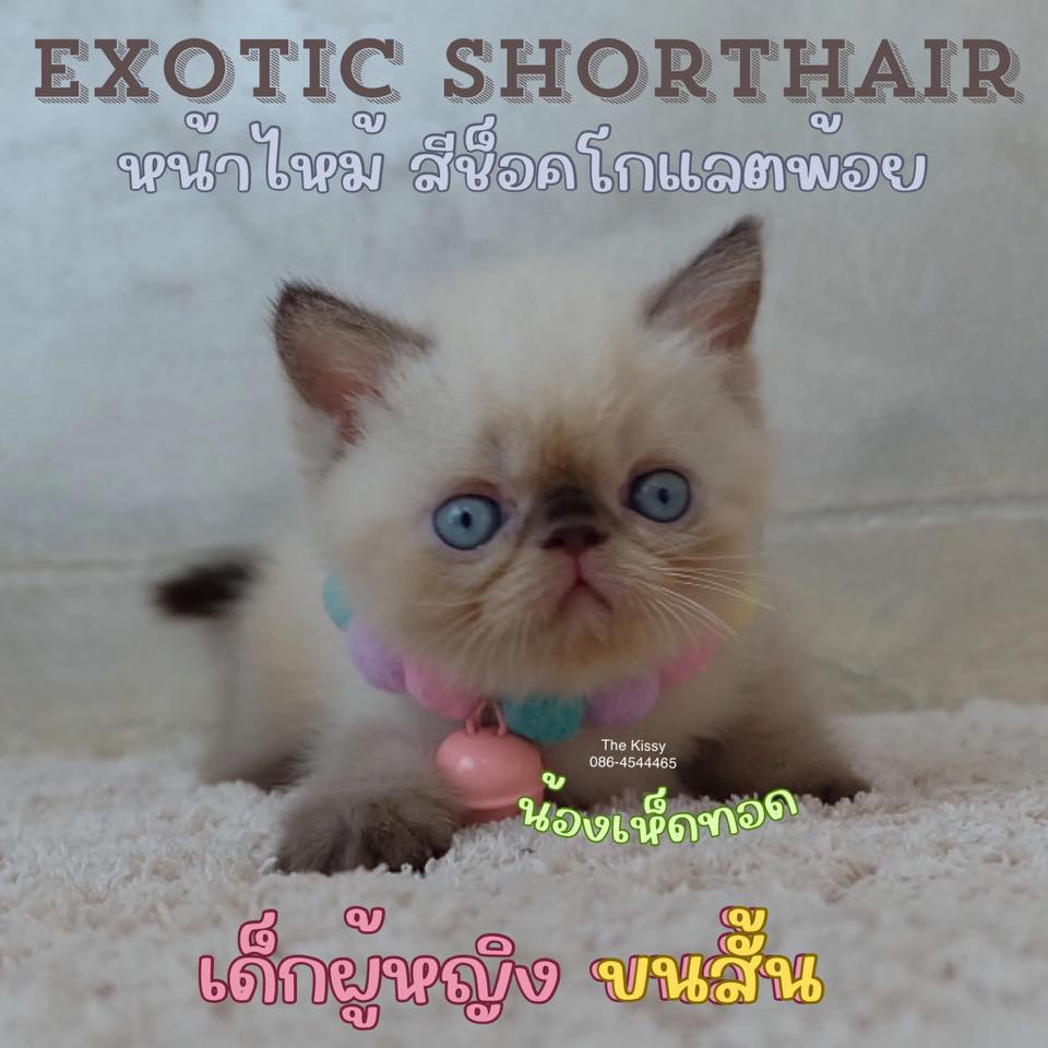 น้องเห็ดทอด สายพันธุ์ Exotic Shorthair ลูกแมวเอ็กโซติกช็อตแฮร์ สีหิมาลายัน ช็อคโกแลตพ้อย colour poin