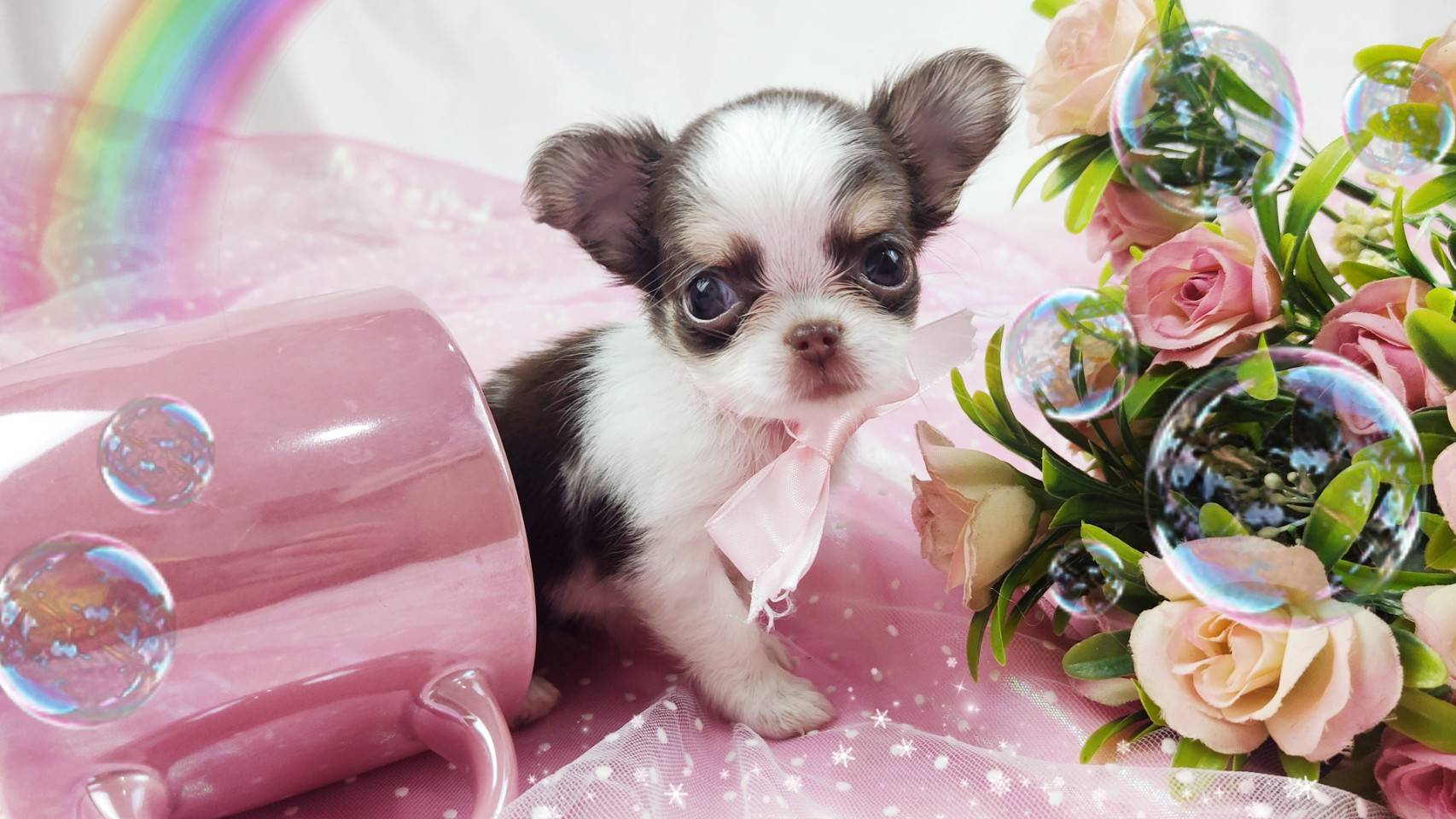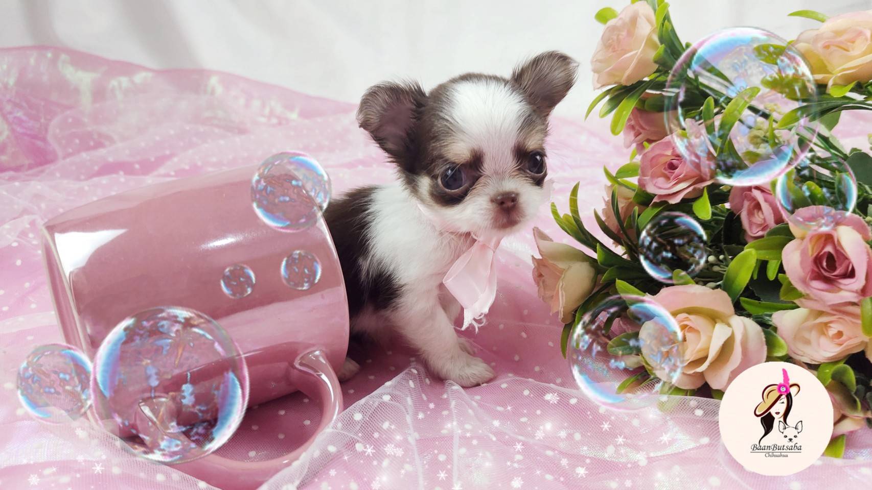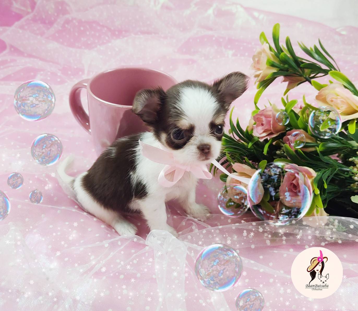 long coat chocolate-fancy tiny small girl with apple dome head short nose and very cute 25000