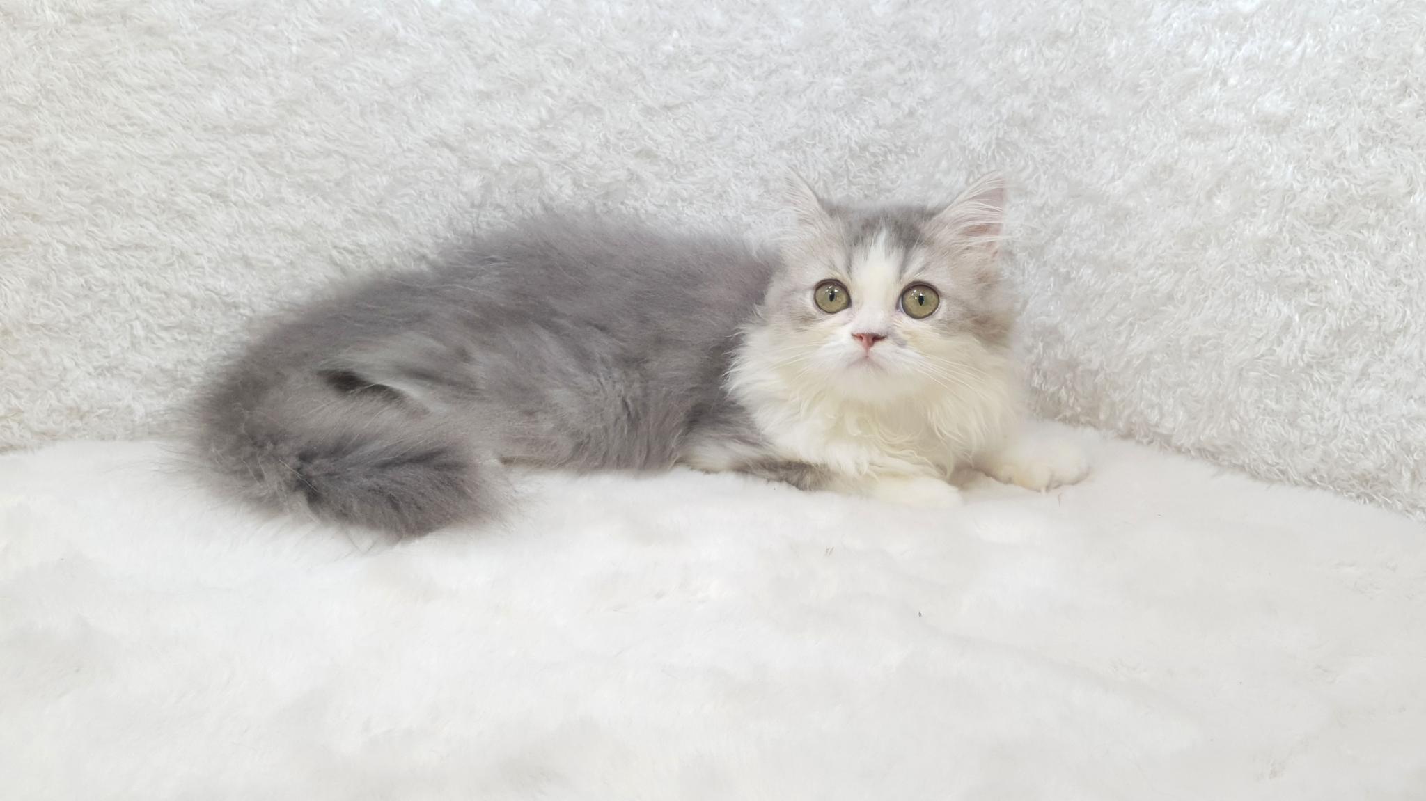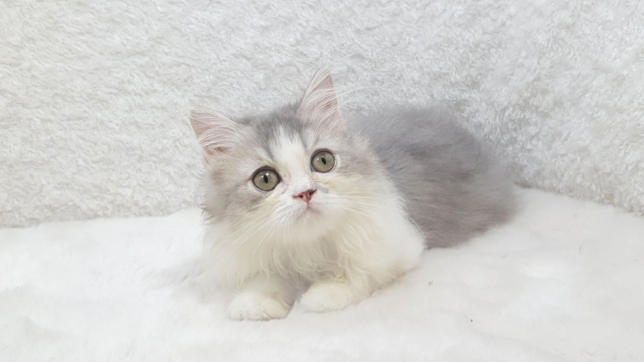 ลูกแมวเปอร์เซีย สีขาวเทา เพศเมีย 3 เดือนกว่า วัคซีนแล้ว