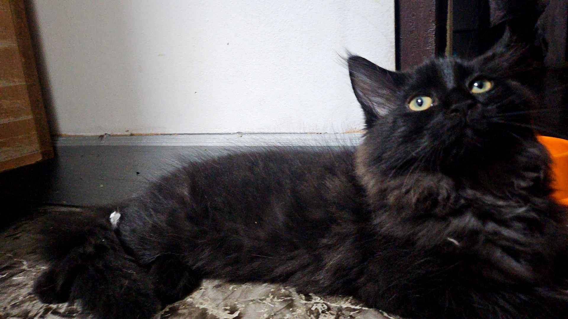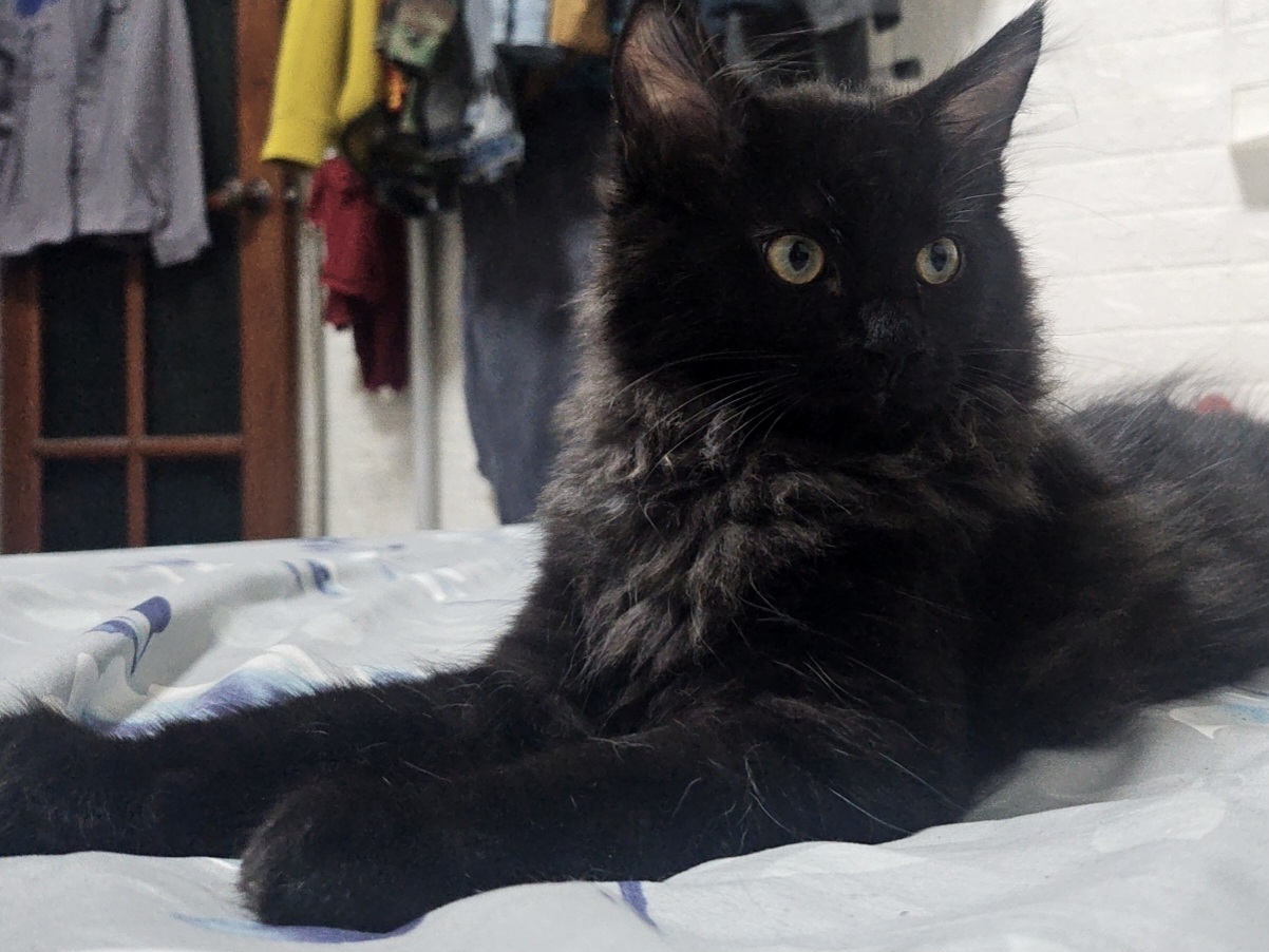 น้องเป็นสีดำสโมคคอเทา ฉลาดติดคน ชอบกินๆนอนๆเวลากลางวัน กลางคืนตื่นอ้อนคนและชวนเล่น