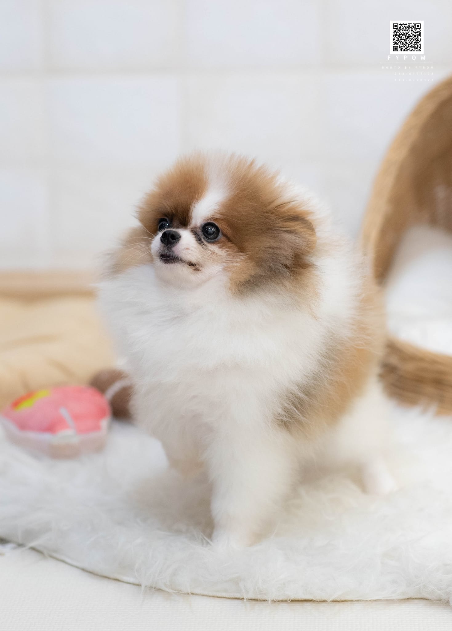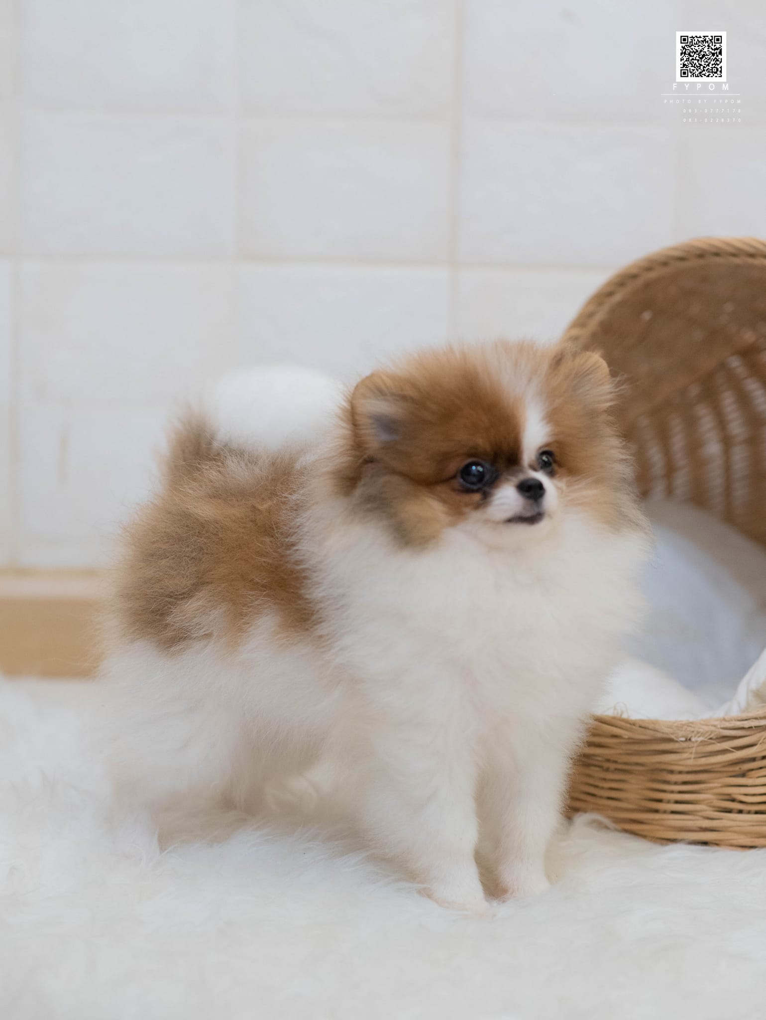 FYPOM KENNEL ขายสาวน้อยสีปาร์ตี้ ขาว-ส้ม โครงสร้างดี ขนแน่น 0830777178