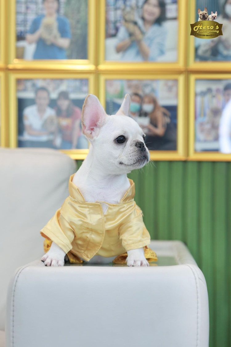 FHM 4881 เพศผู้ สีขาว อายุ 2 เดือน ใบหูเล็ก สายเลือดเยี่ยม หน้าสั้น โครงสร้างดี หุ่นล้ำ