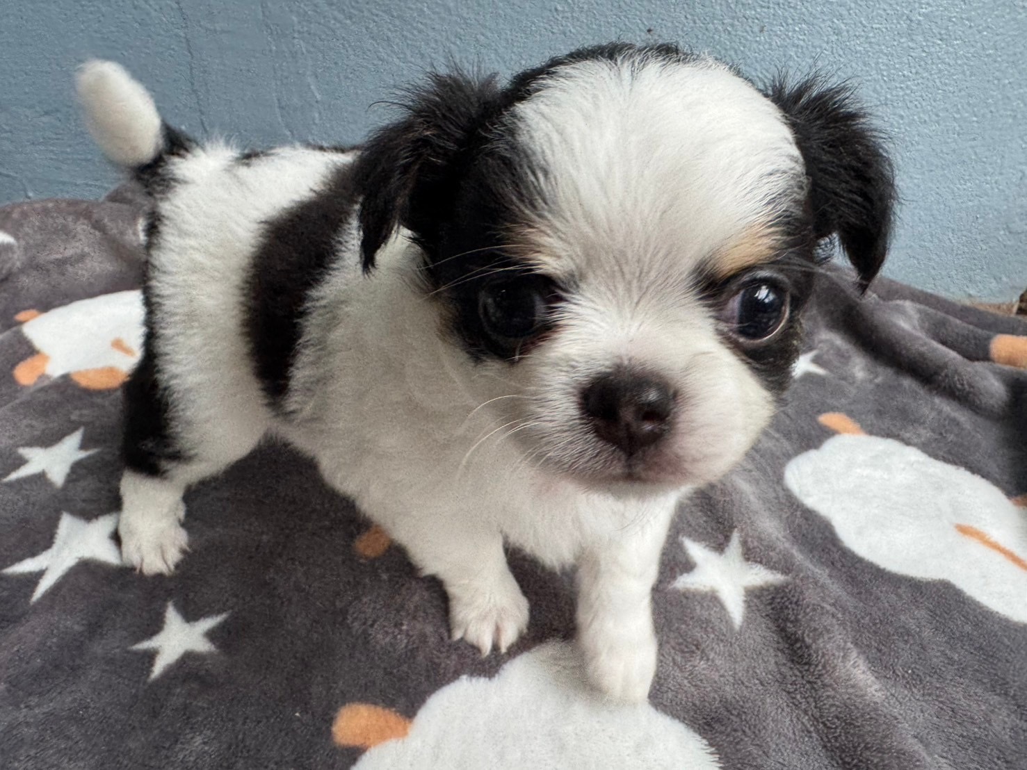น้องบิวกิ้น - ชิวาว่าขนยาว ขนสามสี ขาวดำ น้ำตาล เพศผู้ พร้อมย้ายบ้านตอนอายุ 2 เดือน