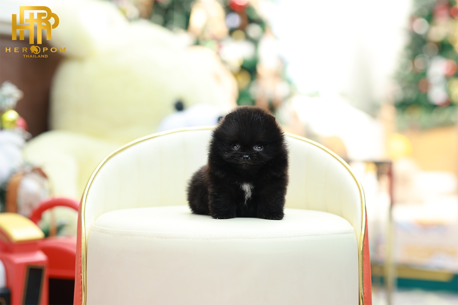 HRM-85103 เพศชาย สีดำ อายุ 2 เดือน ตัวเล็ก ขาสั้น หน้าสั้น ขนแน่นฟู