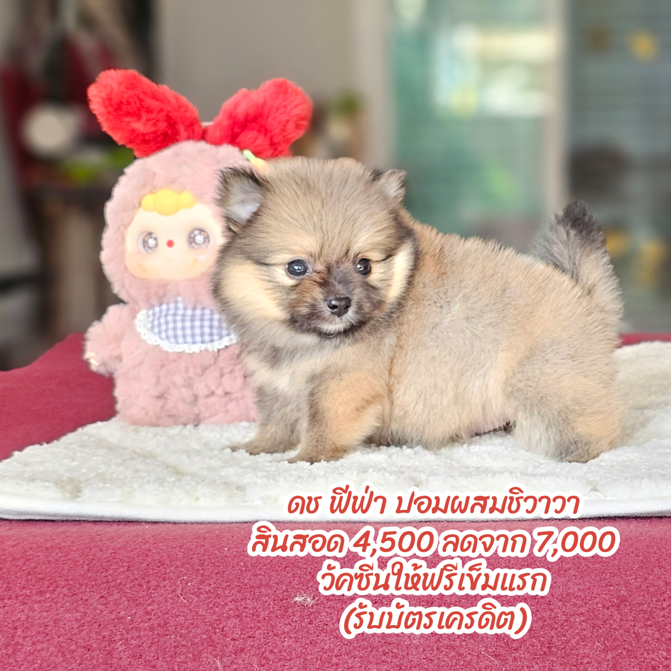 ปอมผสมชิวาวา อายุ2เดือน ไซส์เล็กทีคัพ ฉีดวัคซีนให้ฟรี มีใบวัคซีน พร้อมย้ายบ้าน มีบริการส่ง เก็บปลายทาง