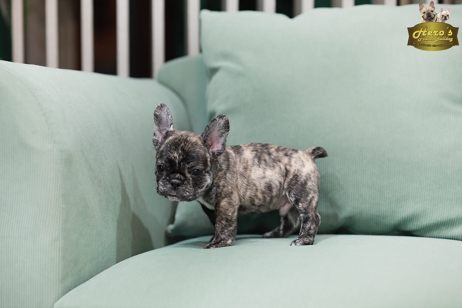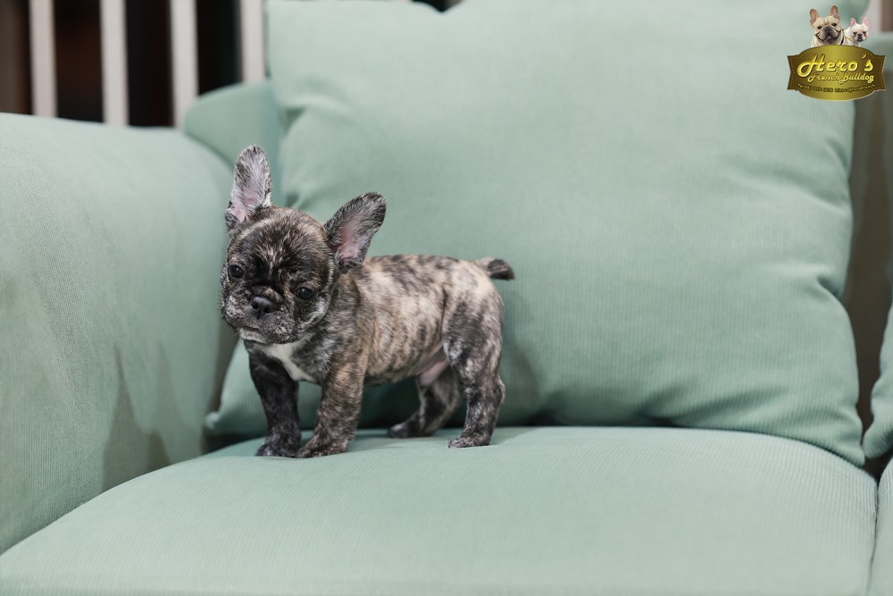 FHM-50803 เพศชาย สีดำลายเสือ อายุ 2 เดือน ใบหูเล็ก สายเลือดเยี่ยม หน้าสั้น โครงสร้างดี หุ่นล้ำ