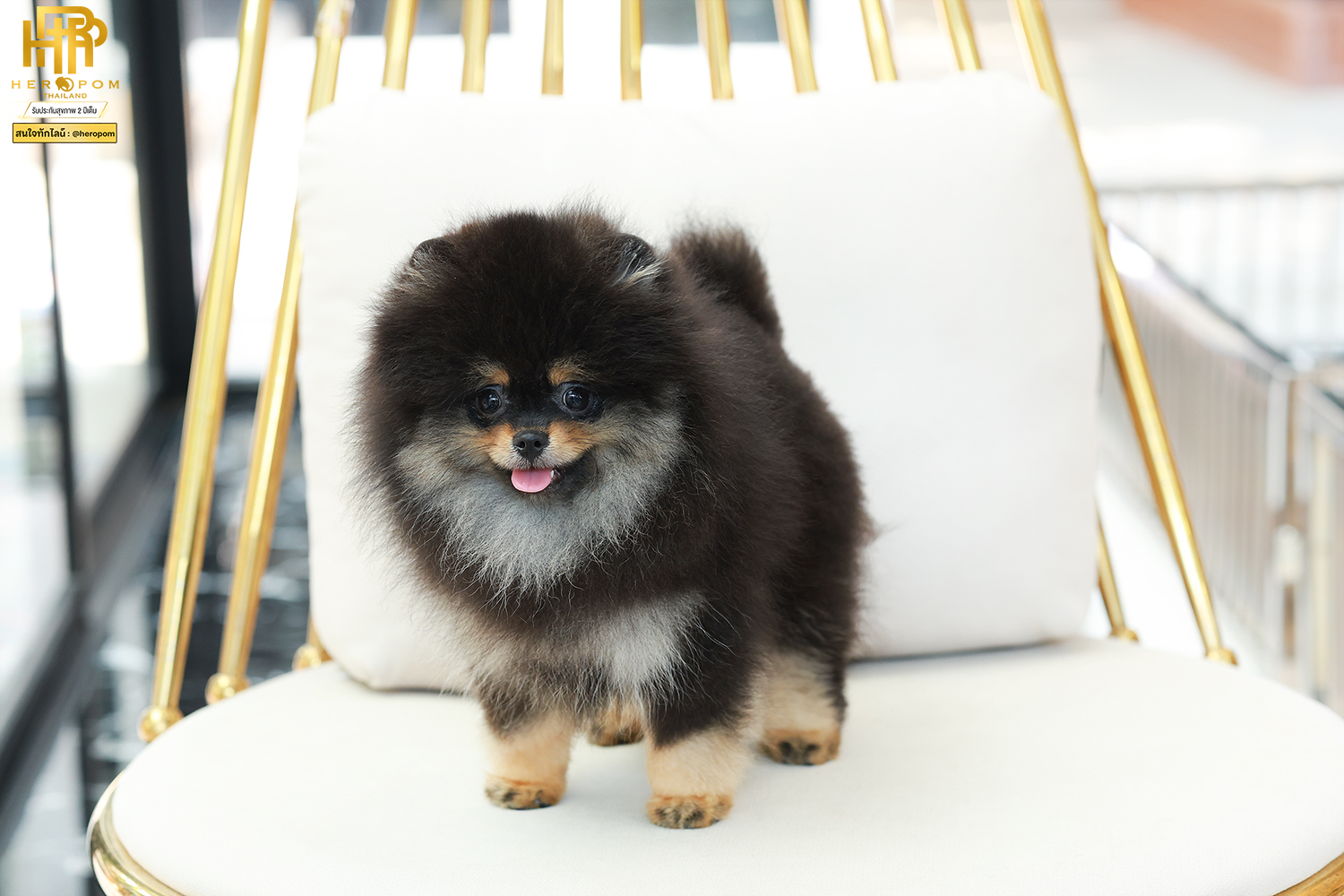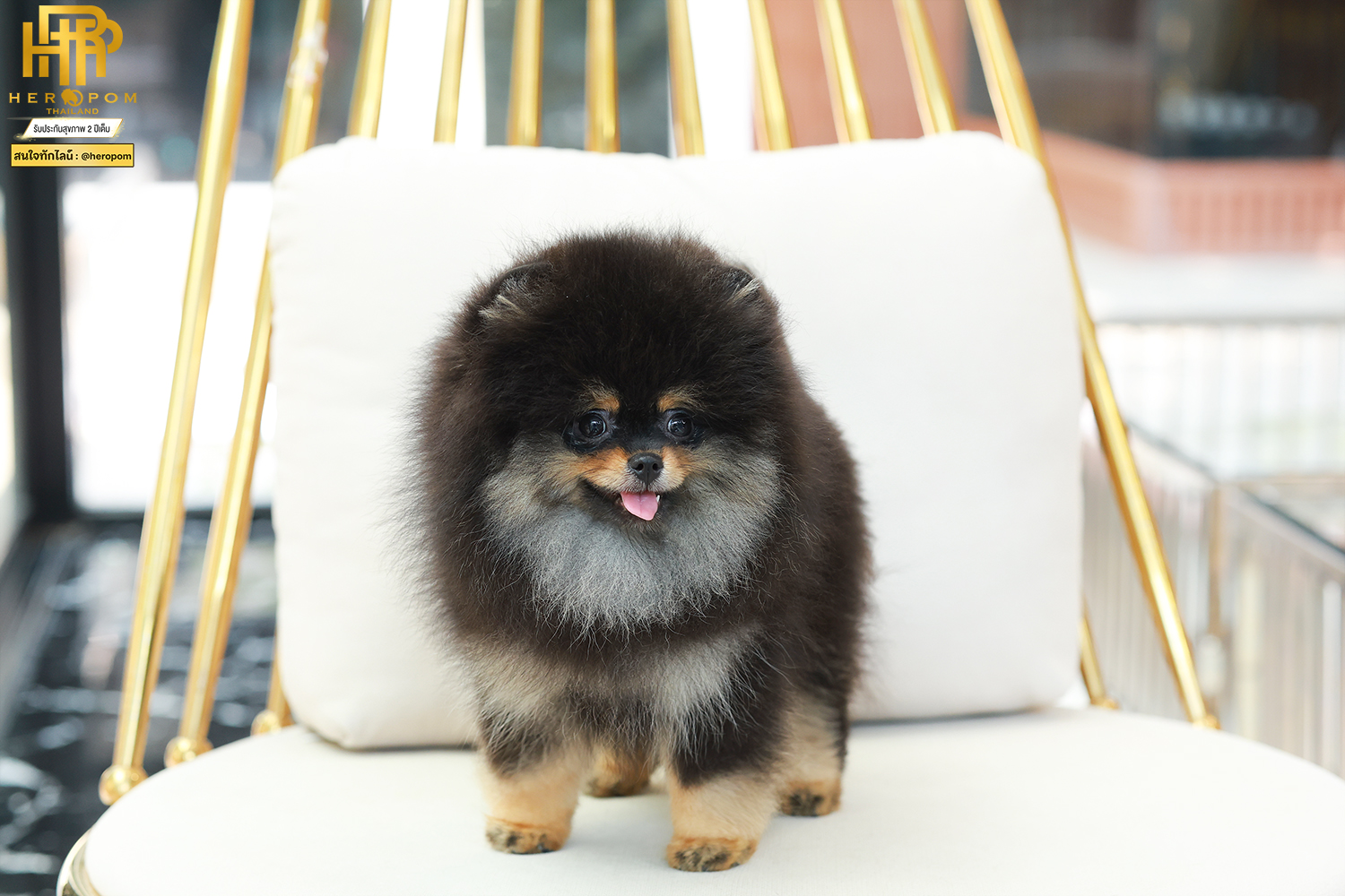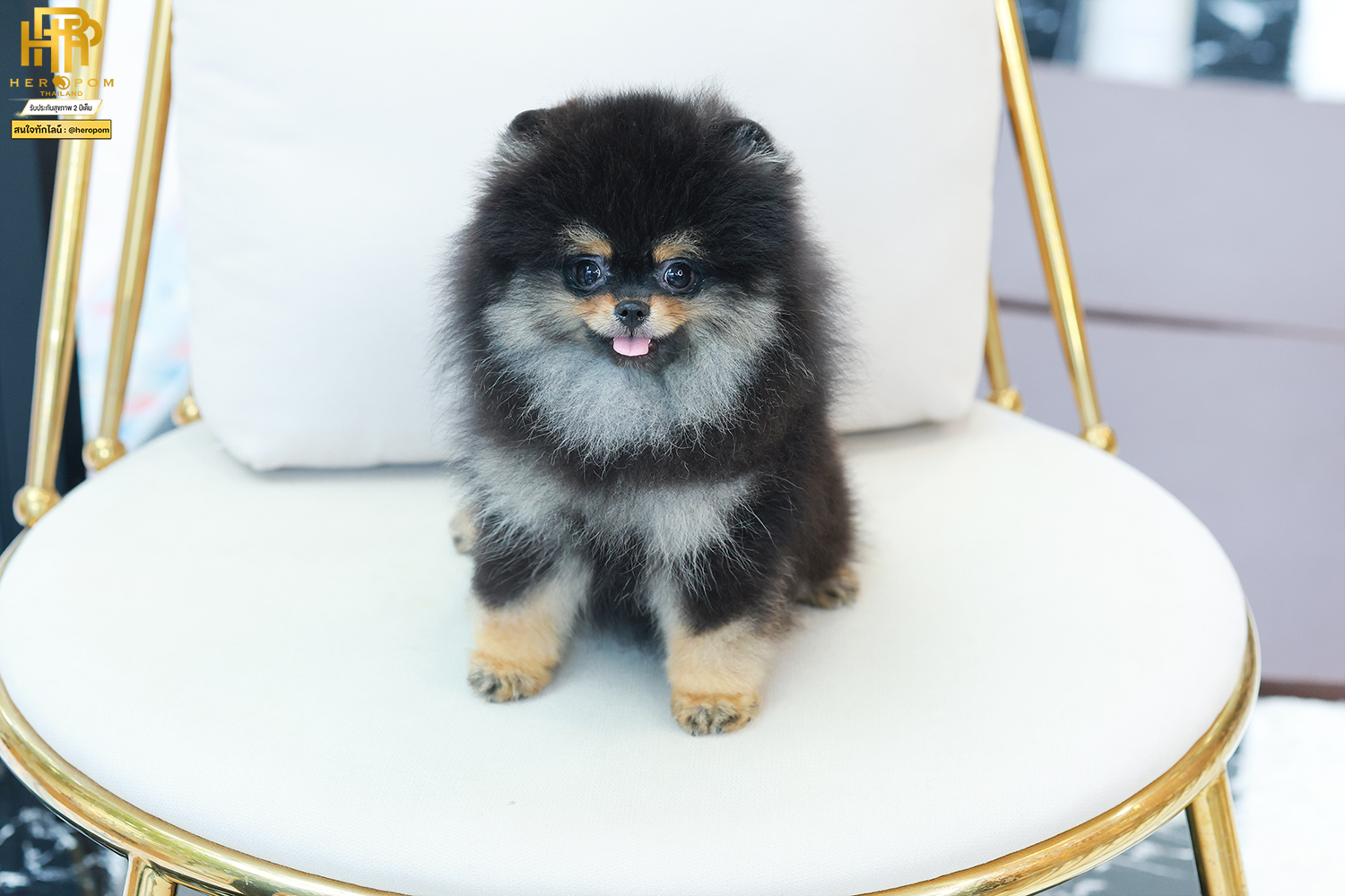 HRF-85010 Pom เพศหญิง สีแบล็คแทน อายุ 2 เดือน ตัวเล็ก ขาสั้น หน้าสั้น ขนแน่น