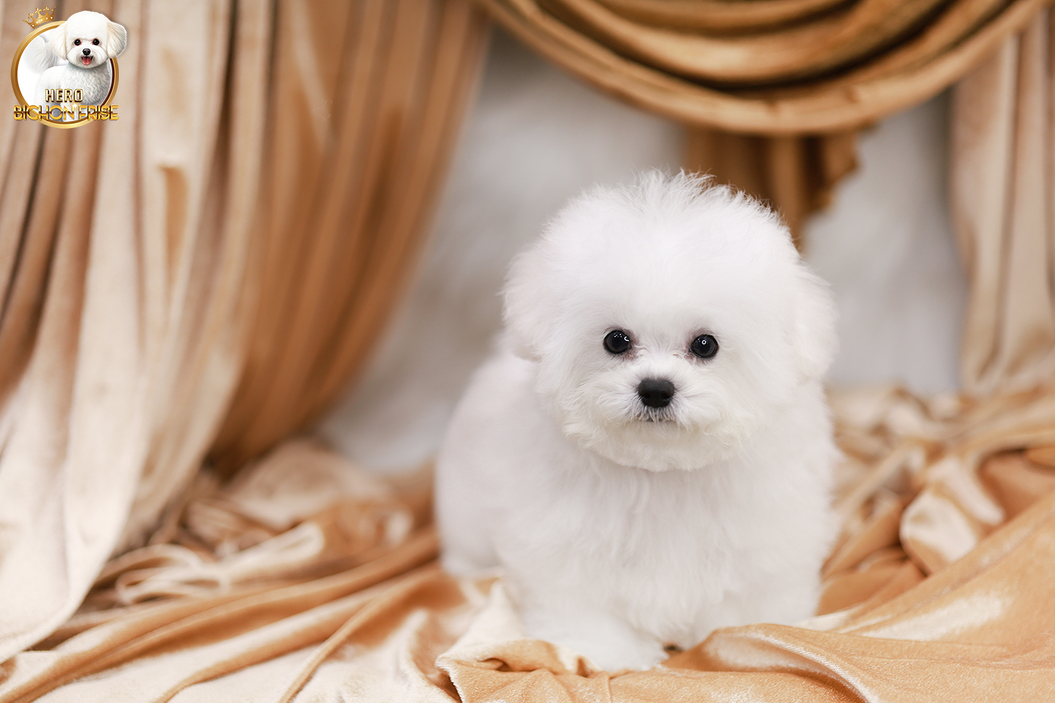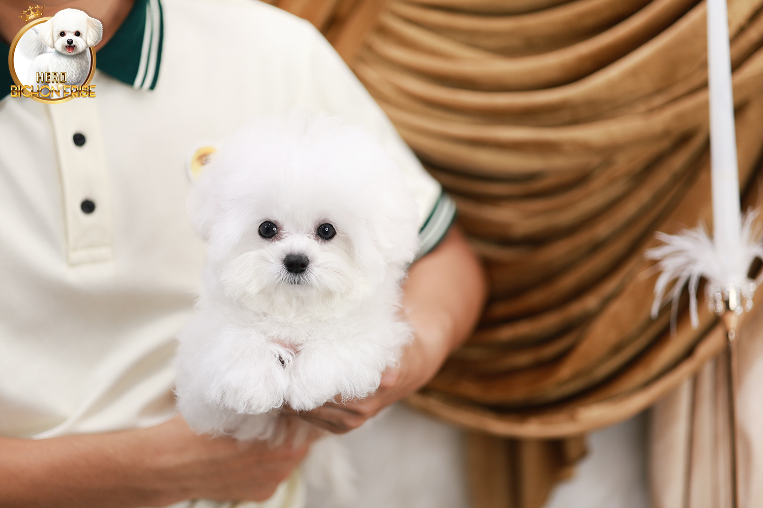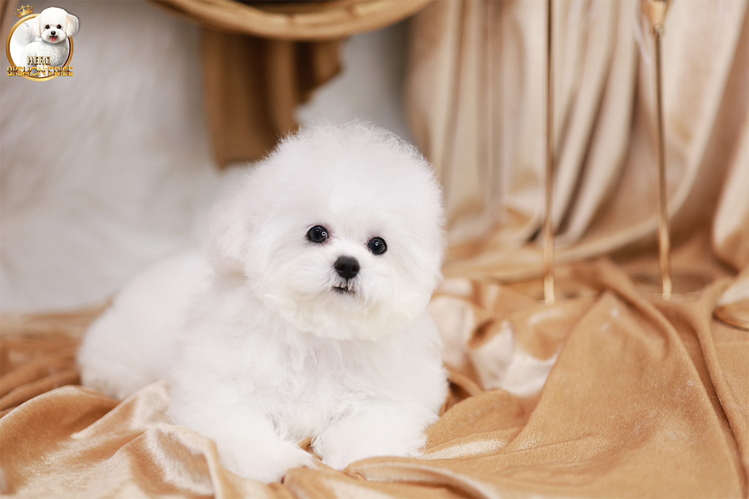 BCM-01014 bichon เพศชาย สีขาว อายุ 2 เดือน ตัวเล็ก ขาสั้น หน้าสั้น ขนแน่นฟู