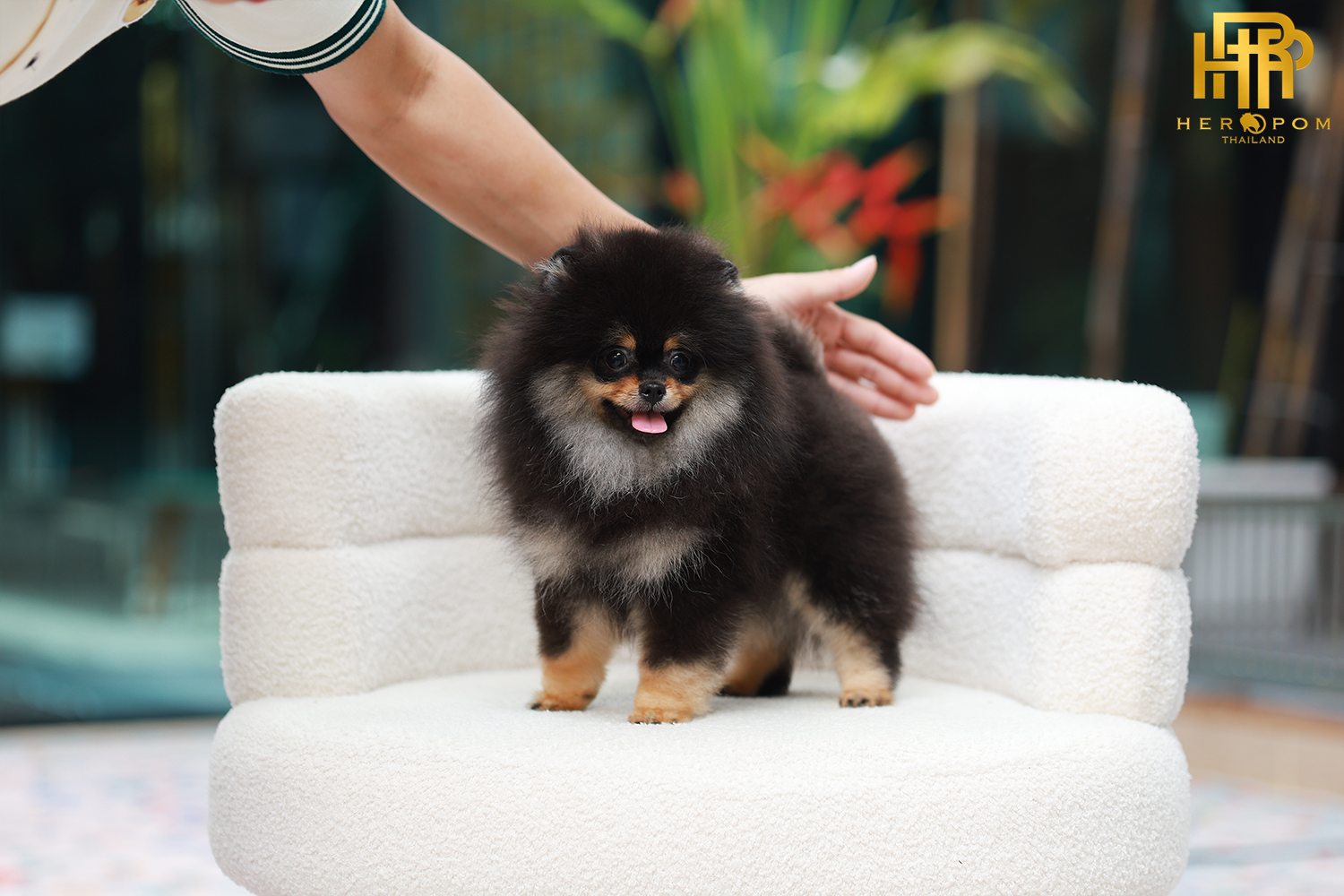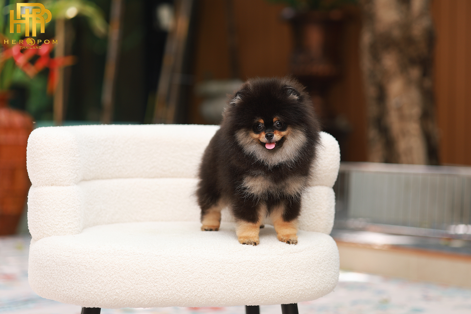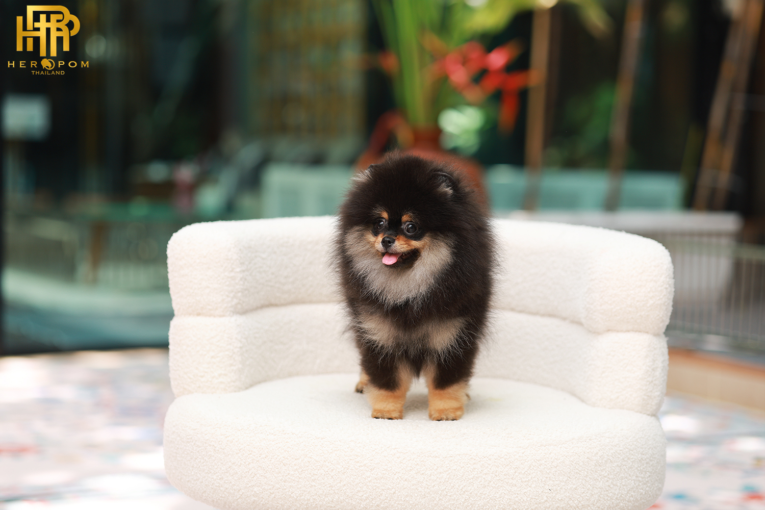 Pomeranian HRF-85010 เพศหญิง สีแบล็คแทน อายุ 2 เดือน ตัวเล็ก ขาสั้น หน้าสั้น ขนแน่นฟู