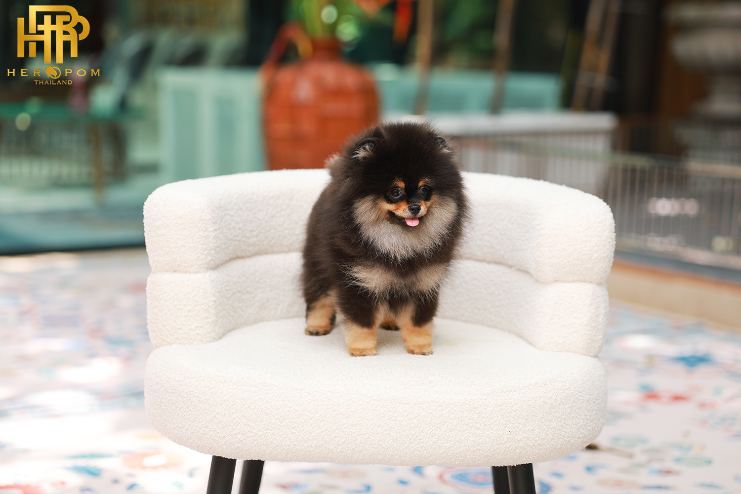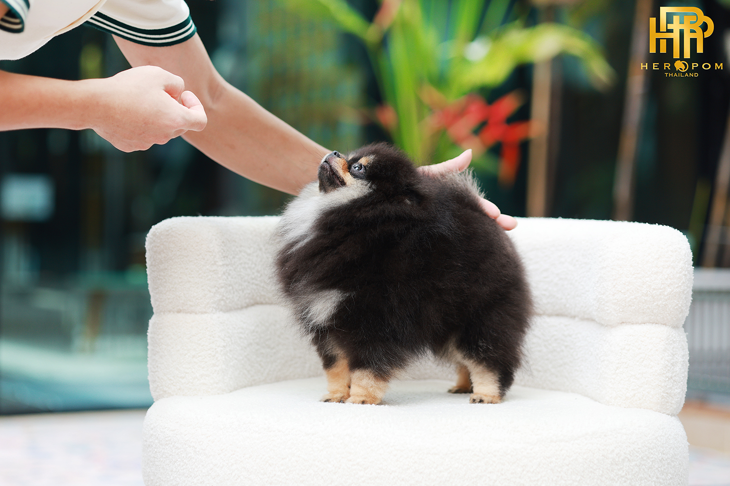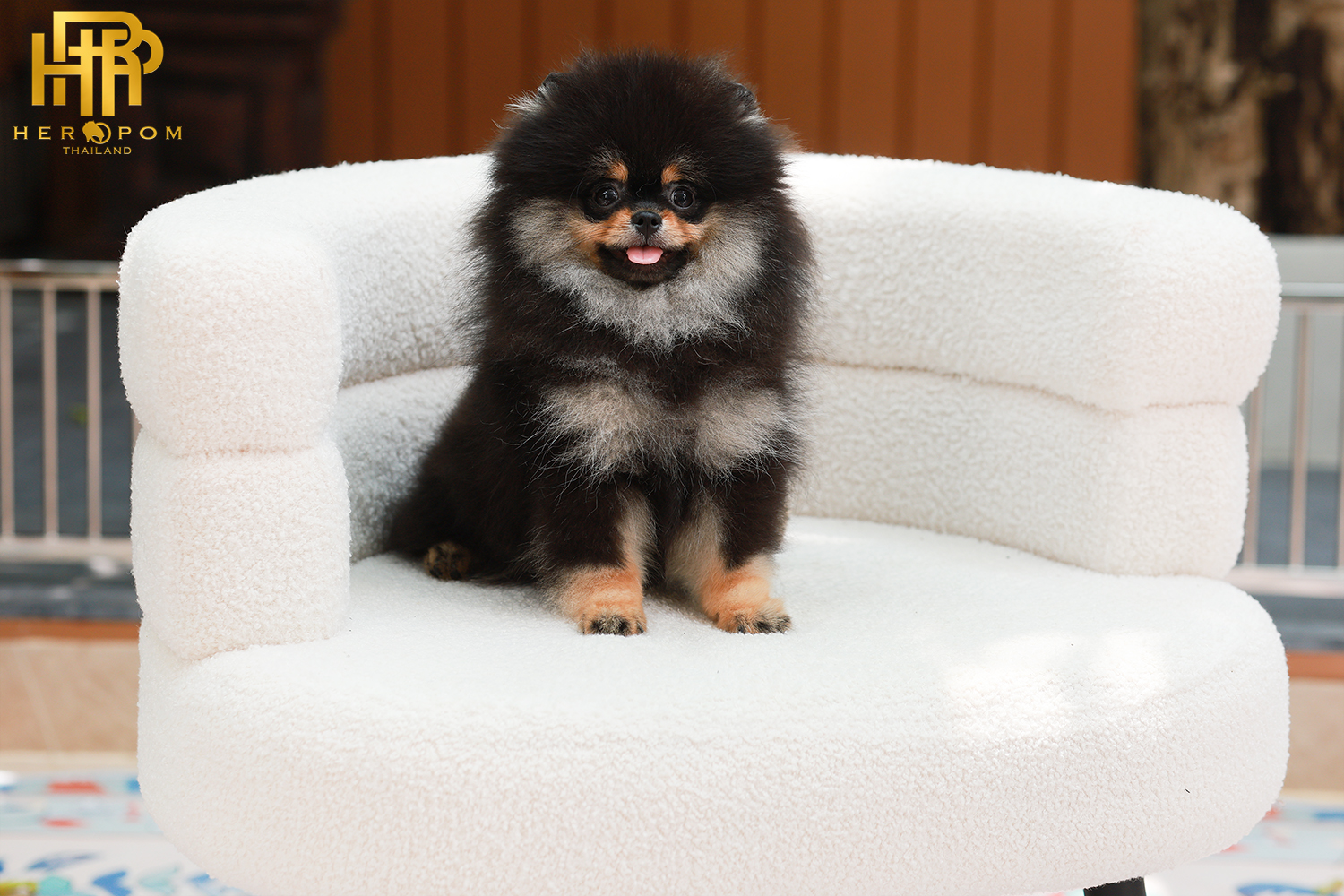 Pomeranian HRF-85010 เพศหญิง สีแบล็คแทน อายุ 2 เดือน ตัวเล็ก ขาสั้น หน้าสั้น ขนแน่นฟู