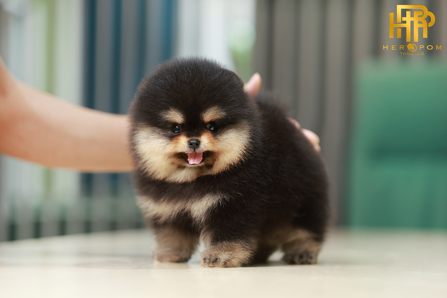 ปอมหน้าหมี ปอมแท้ ปอมเมอเรเนียน HRF-50871 เพศหญิง สีแบล็คแทน อายุ 2 เดือน ตัวเล็ก ขาสั้น หน้าสั้น ขนแน่นฟู