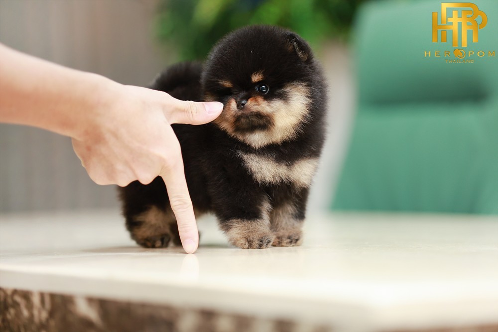 ปอมหน้าหมี ปอมแท้ ปอมเมอเรเนียน HRF-50872 เพศหญิง สีแบล็คแทน อายุ 2 เดือน ตัวเล็ก ขาสั้น หน้าสั้น ขนแน่นฟู