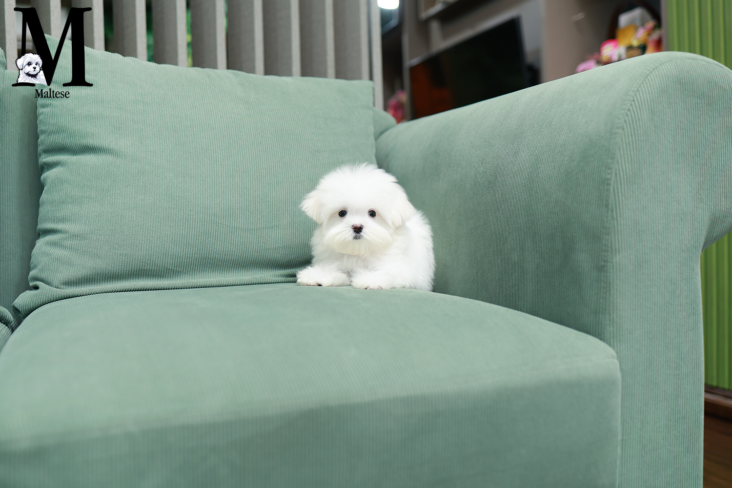 มอลทีส MTF50960 เพศหญิง สีขาว อายุ 2 เดือน ตัวเล็ก ขาสั้น หน้าสั้น ขนแน่นฟู