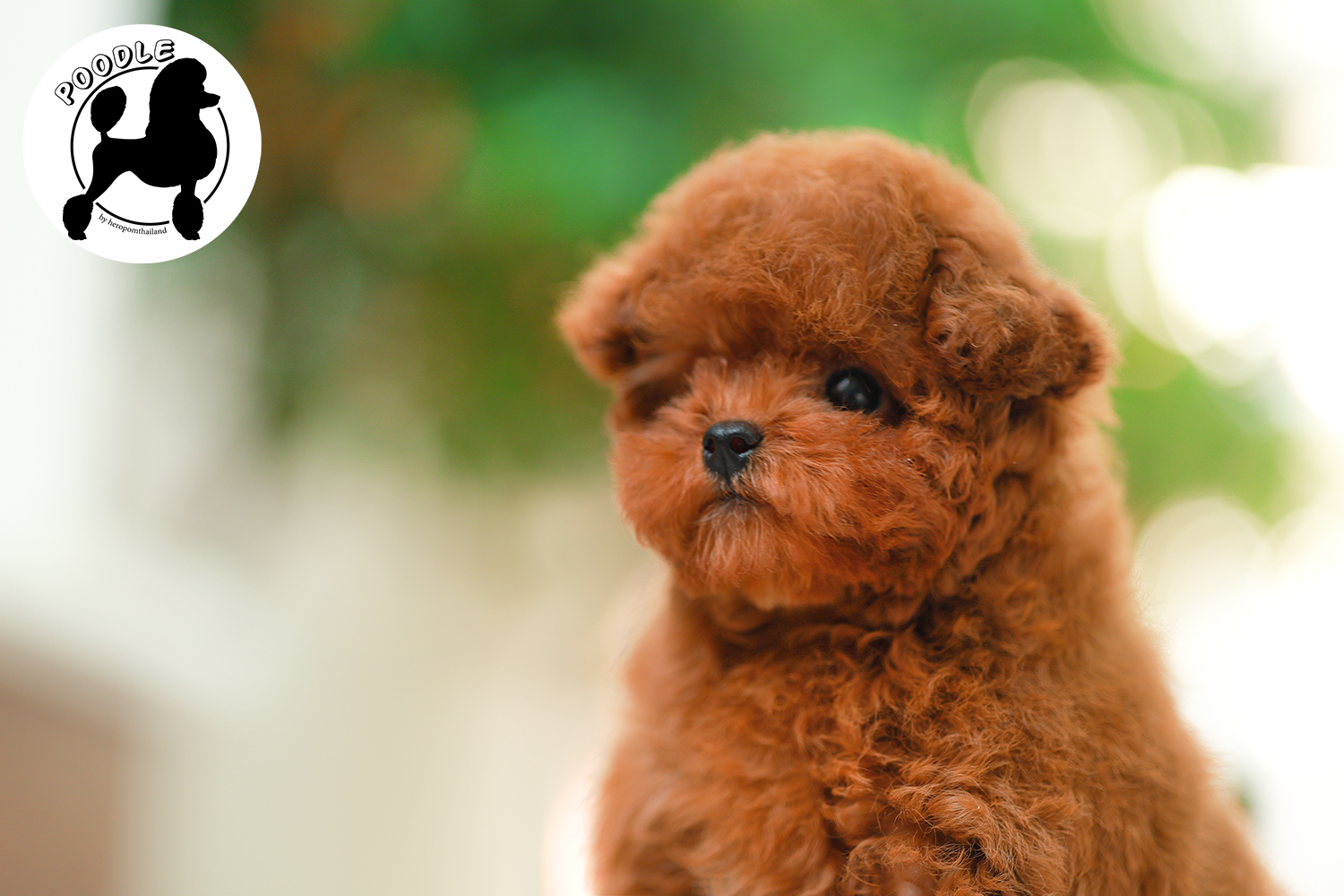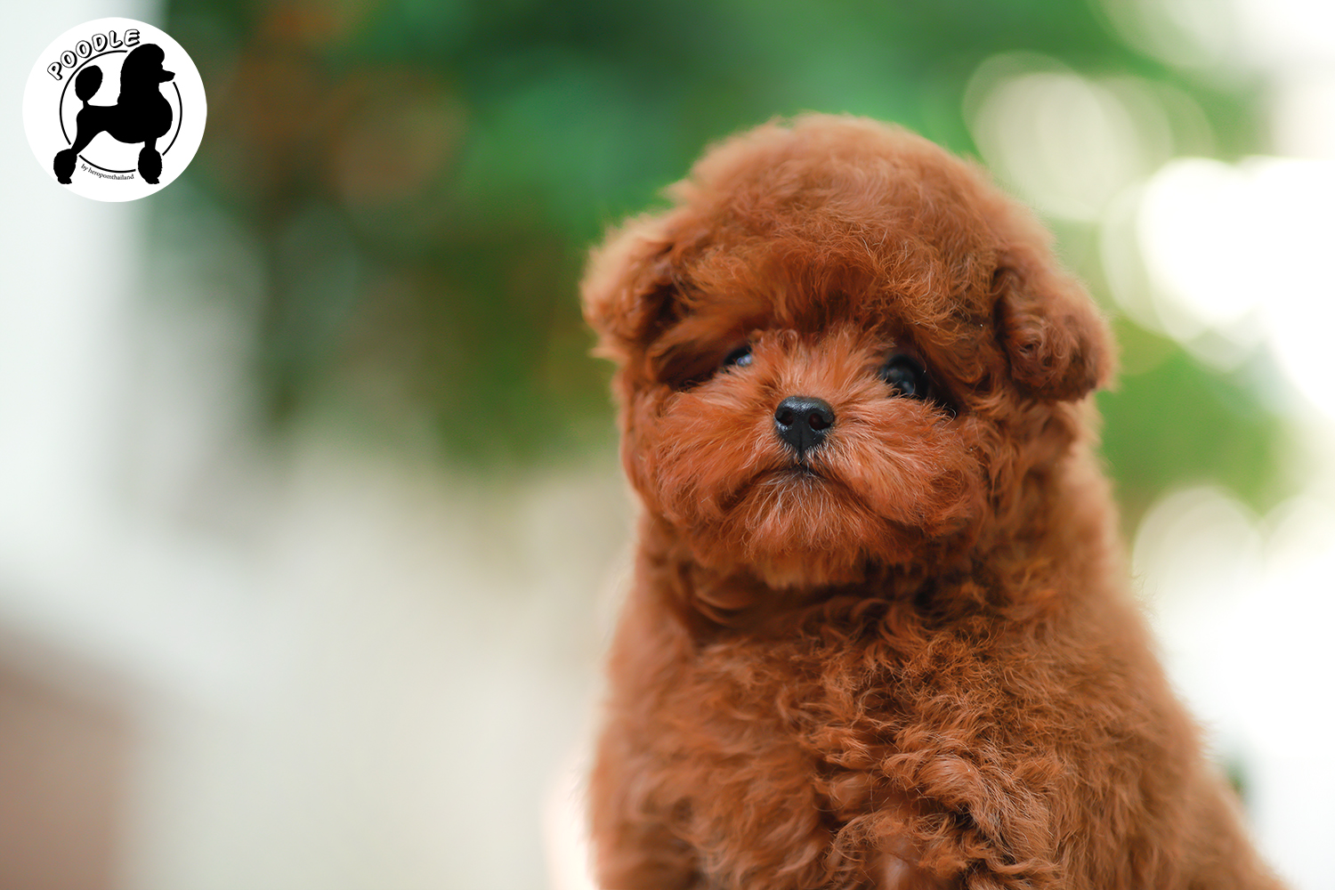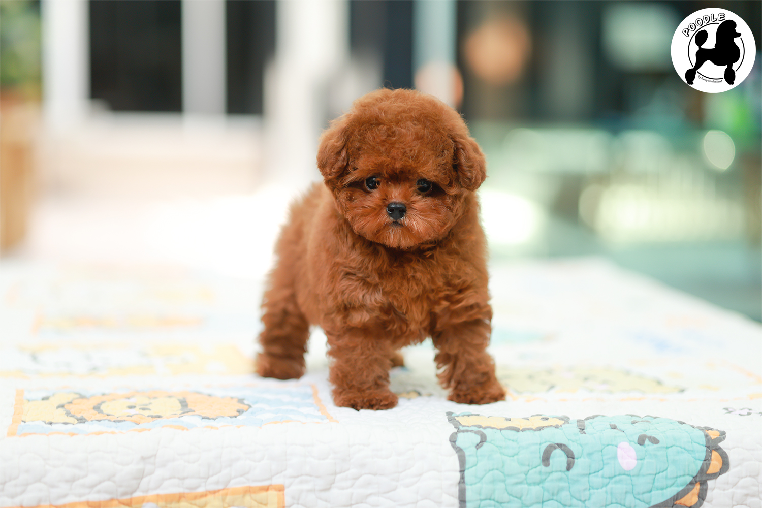 พุดเดิ้ล PDF-02080 เพศหญิง สีน้ำตาลแดง อายุ 2 เดือน ตัวเล็ก ขาสั้น หน้าสั้น ขนแน่นฟู