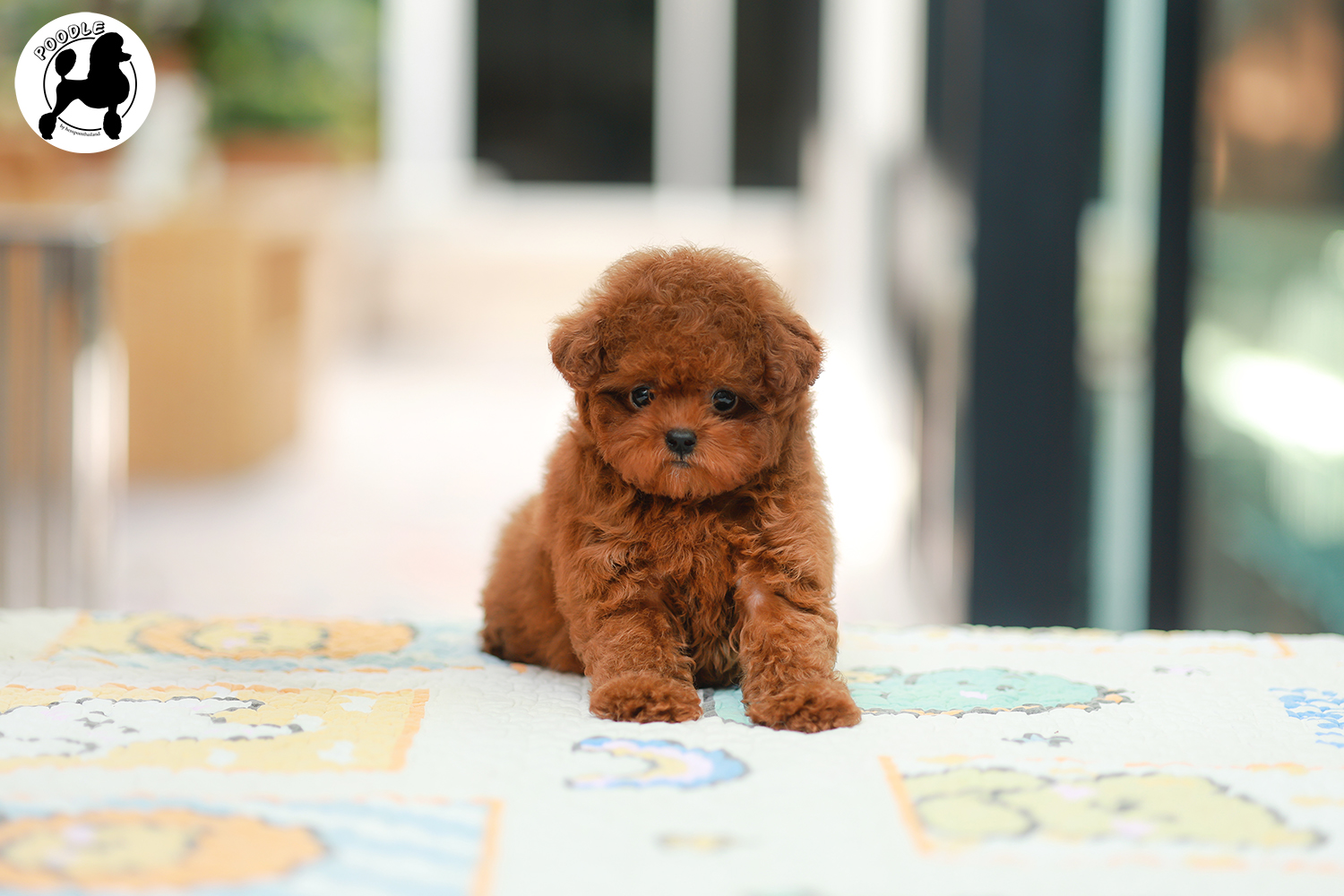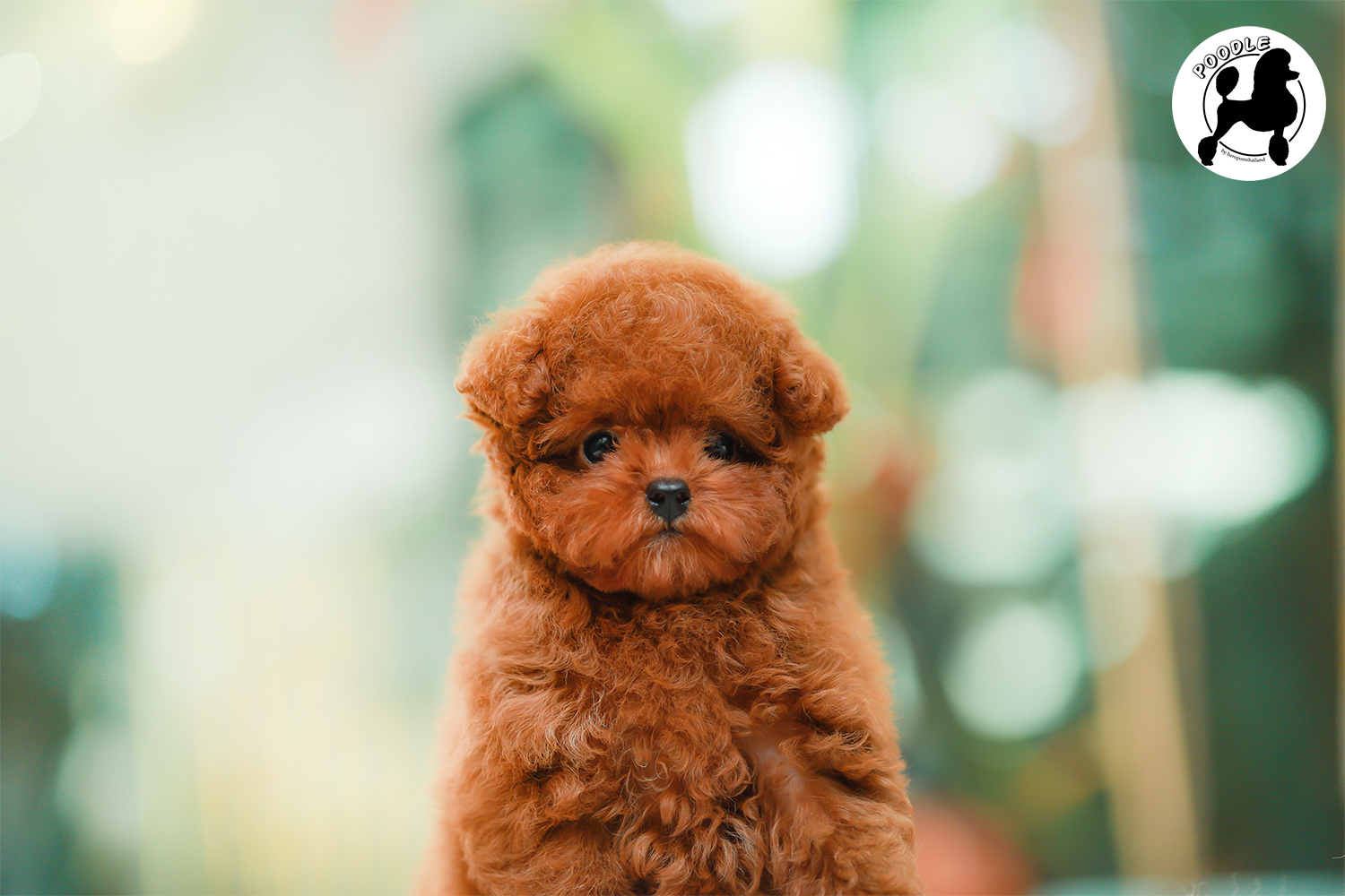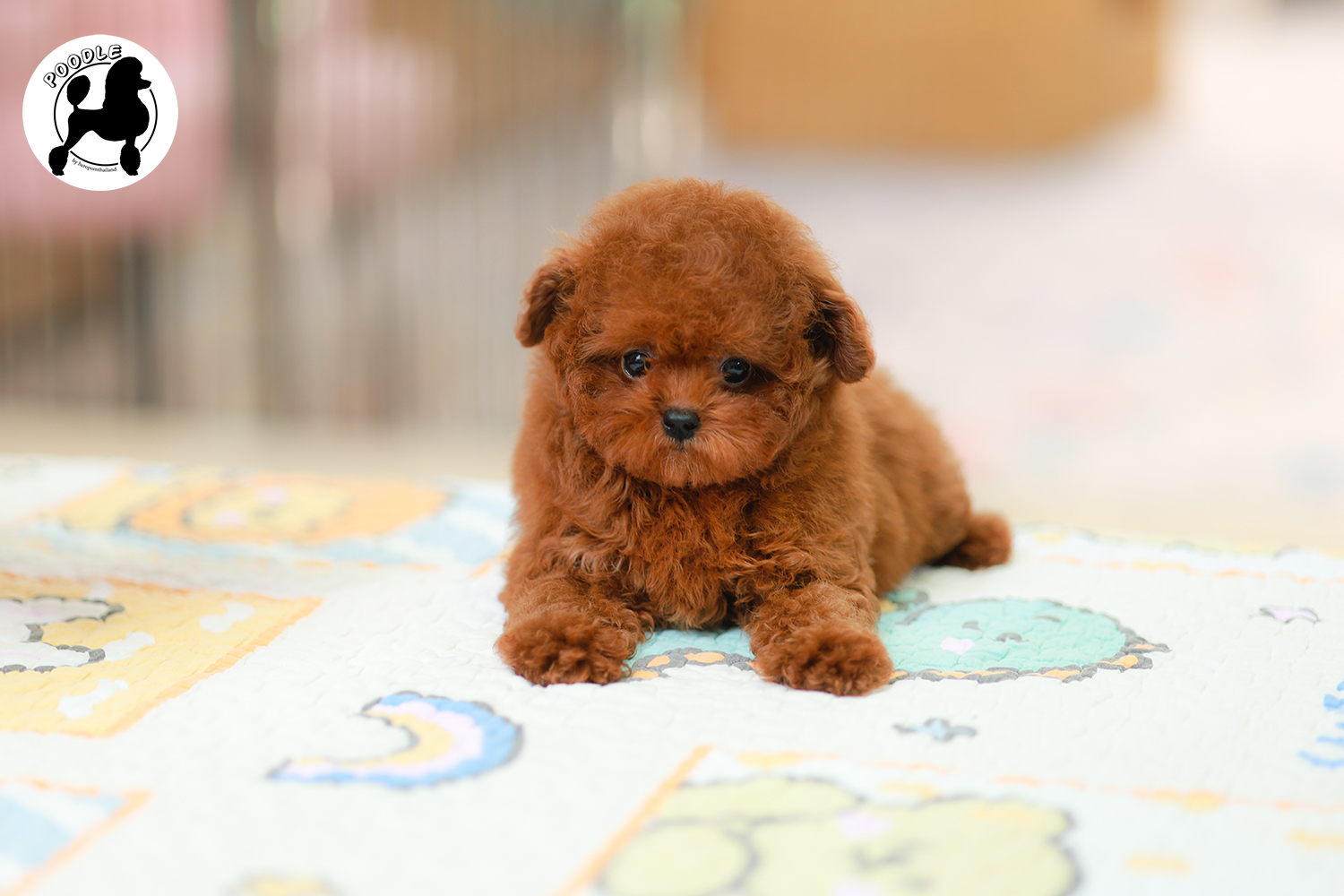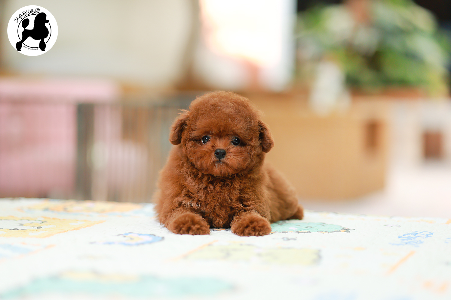 พุดเดิ้ล PDF-02080 เพศหญิง สีน้ำตาลแดง อายุ 2 เดือน ตัวเล็ก ขาสั้น หน้าสั้น ขนแน่นฟู