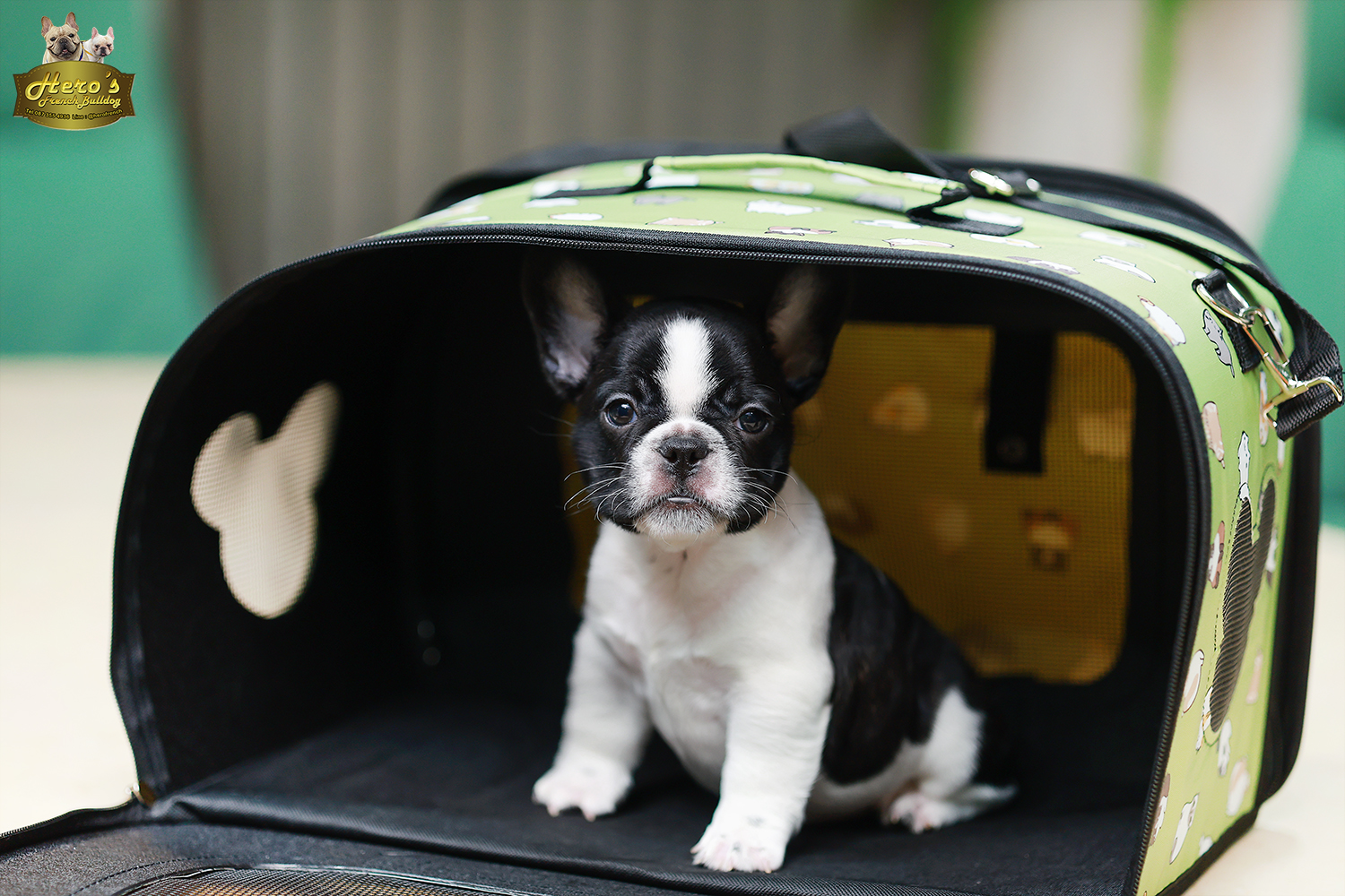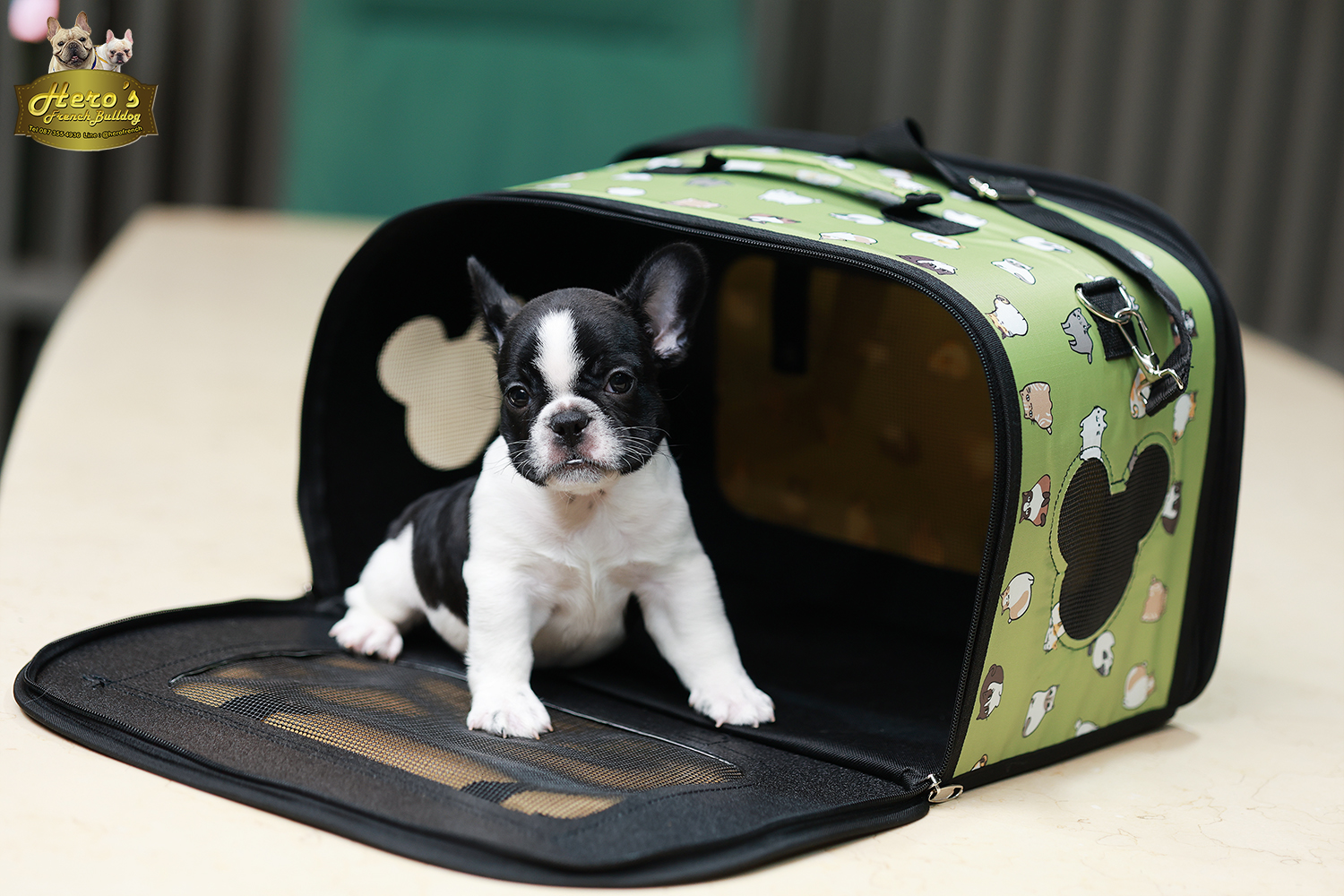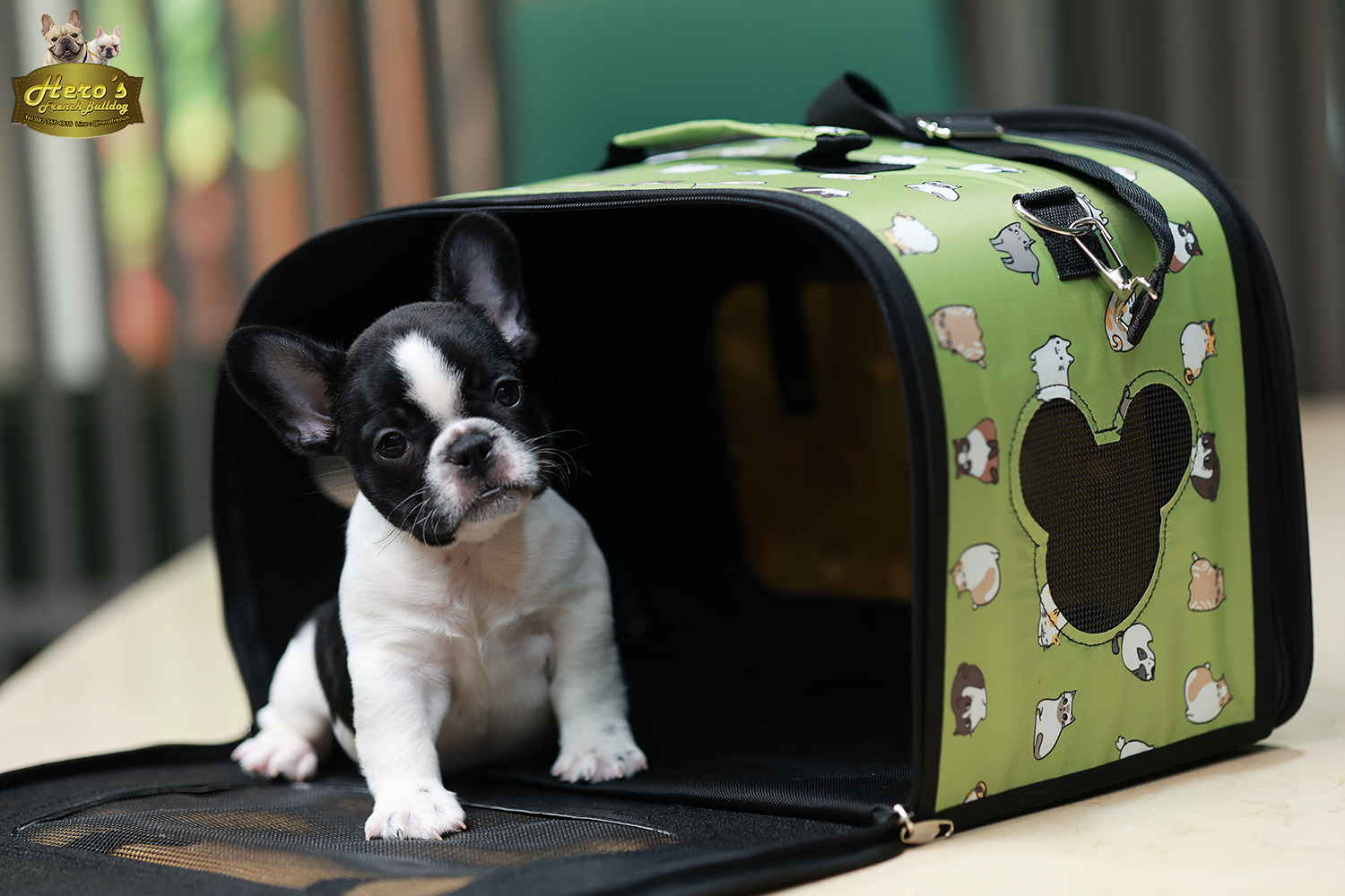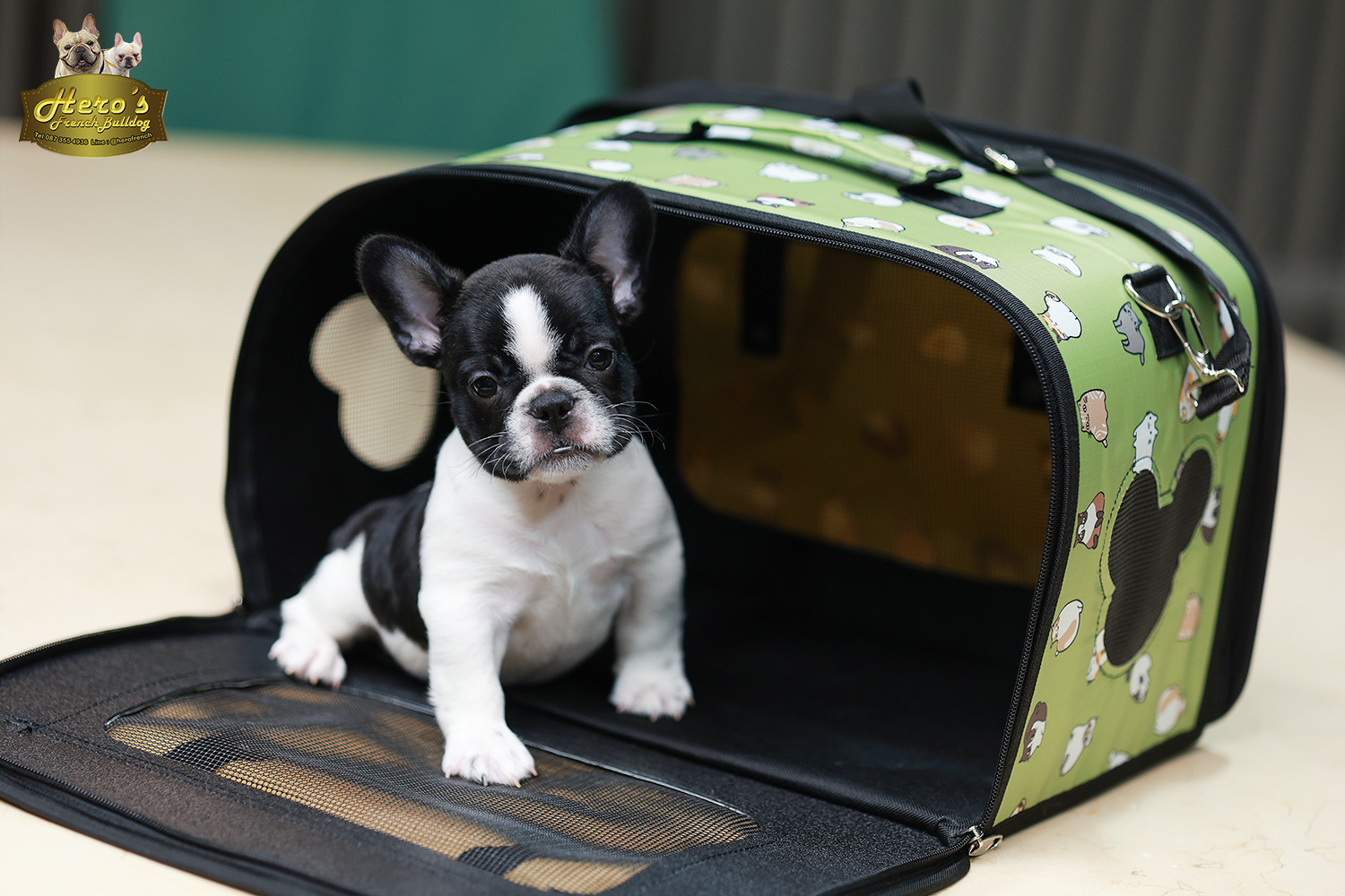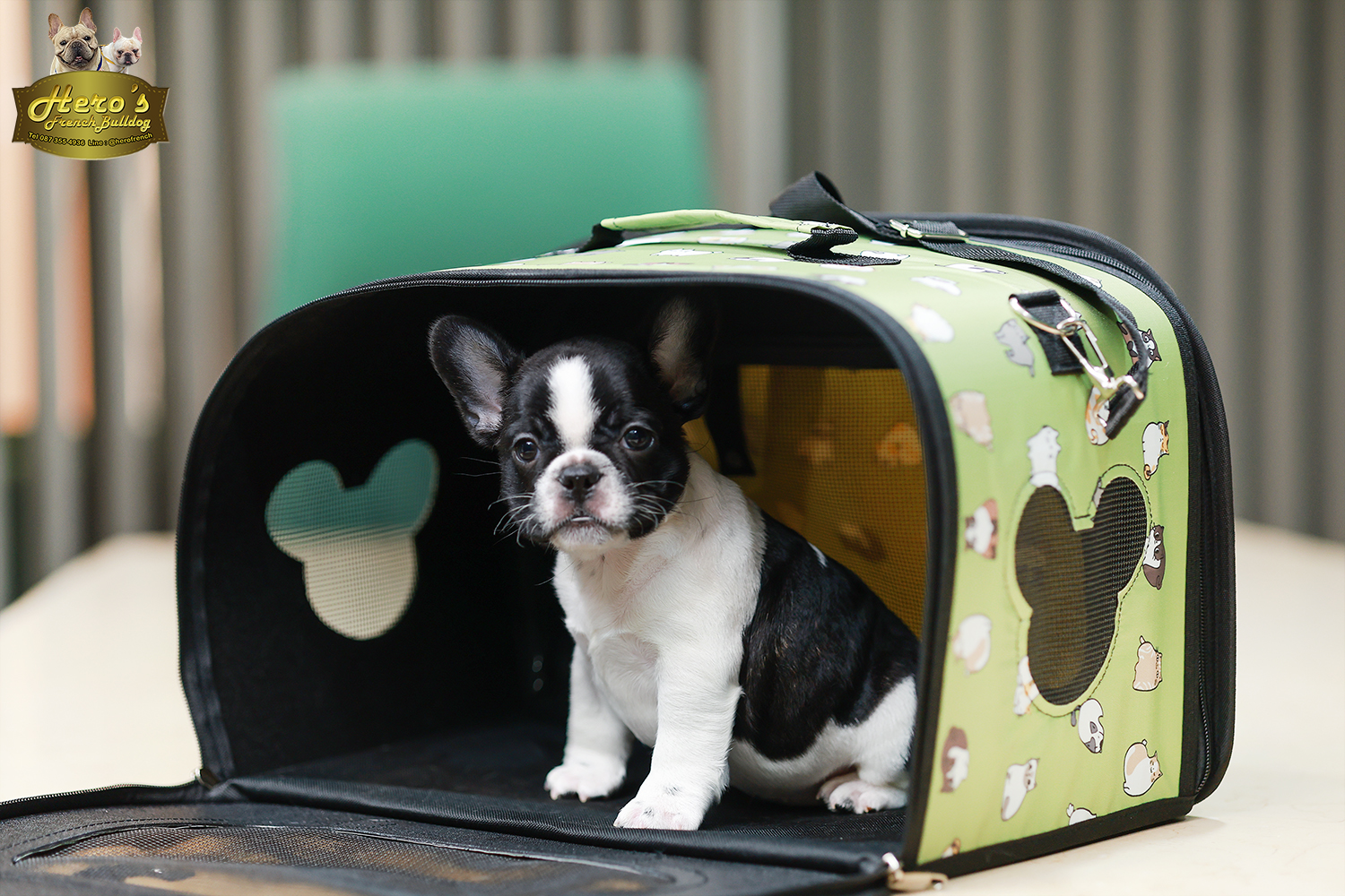 เฟรน บลูด็อก FHF-50858 เพศหญิง สีขาวดำ อายุ 2 เดือน ตัวเล็ก ขาสั้น หน้าสั้น ขนแน่นฟู