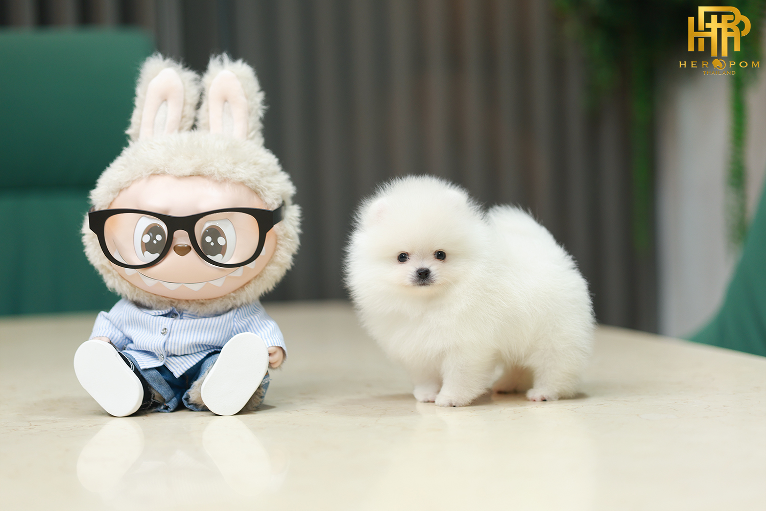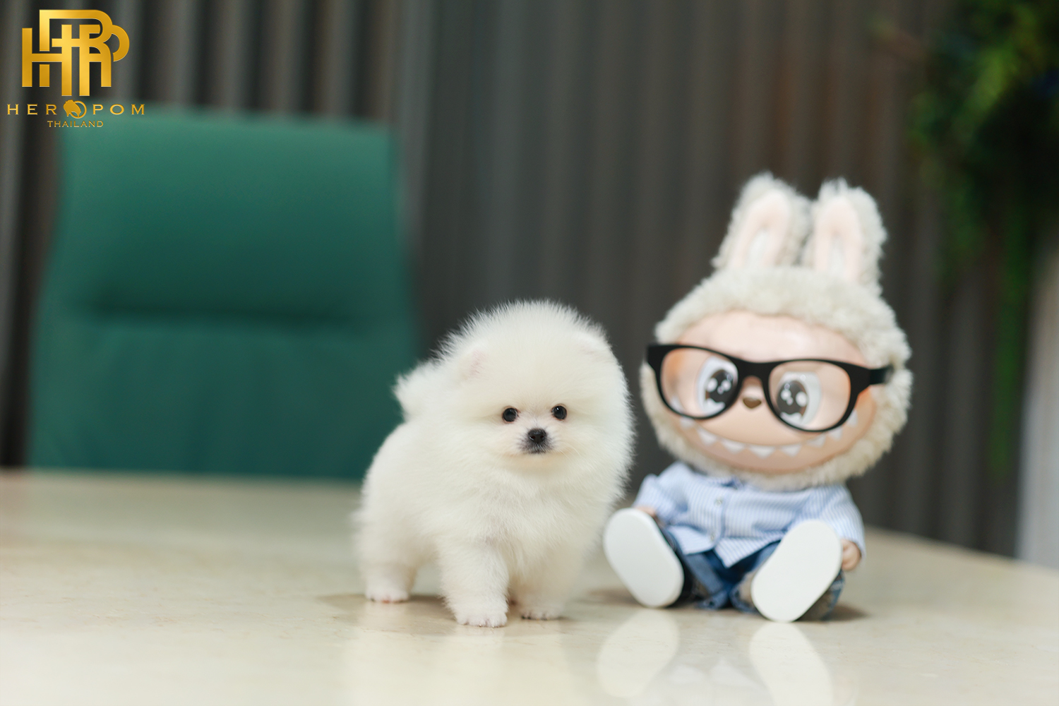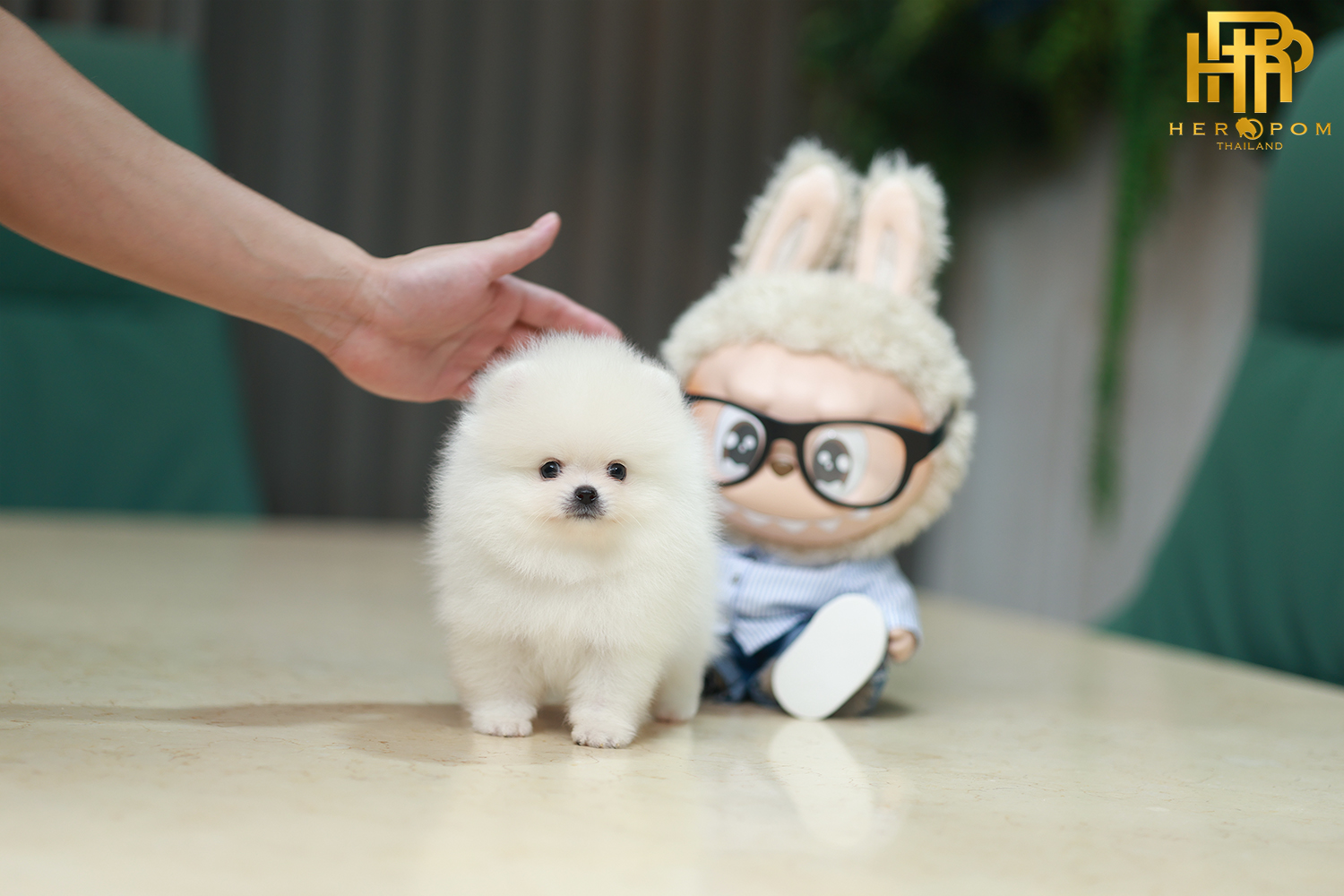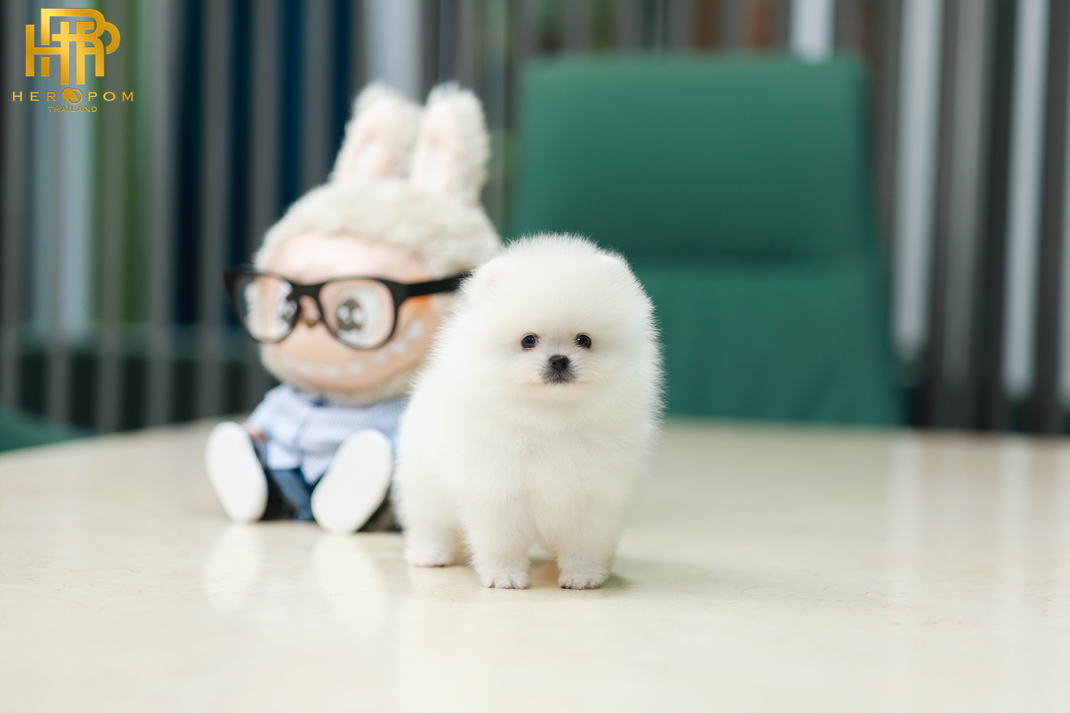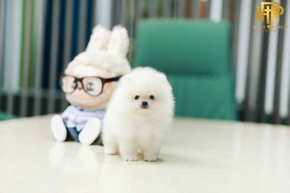 ปอมหน้าหมี ปอมแท้ ปอมเมอเรเนียน HRM-36808 เพศชาย สีขาว อายุ 2 เดือน ตัวเล็ก ขาสั้น หน้าสั้น ขนแน่นฟู