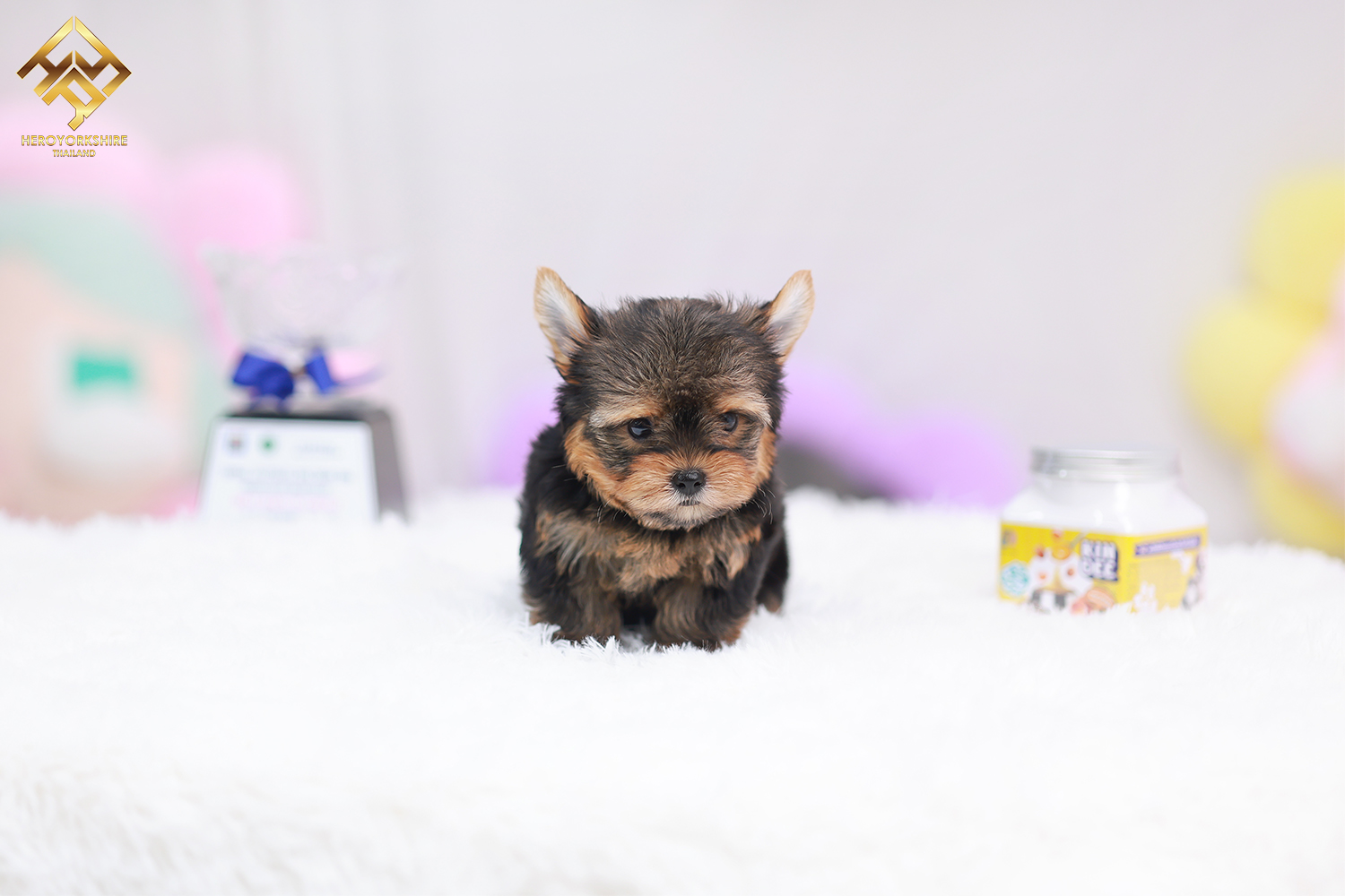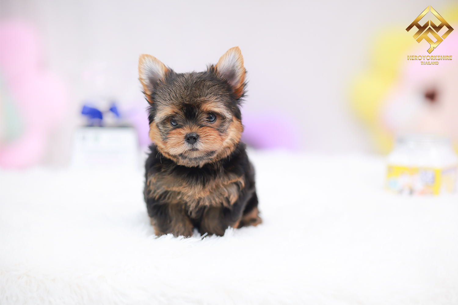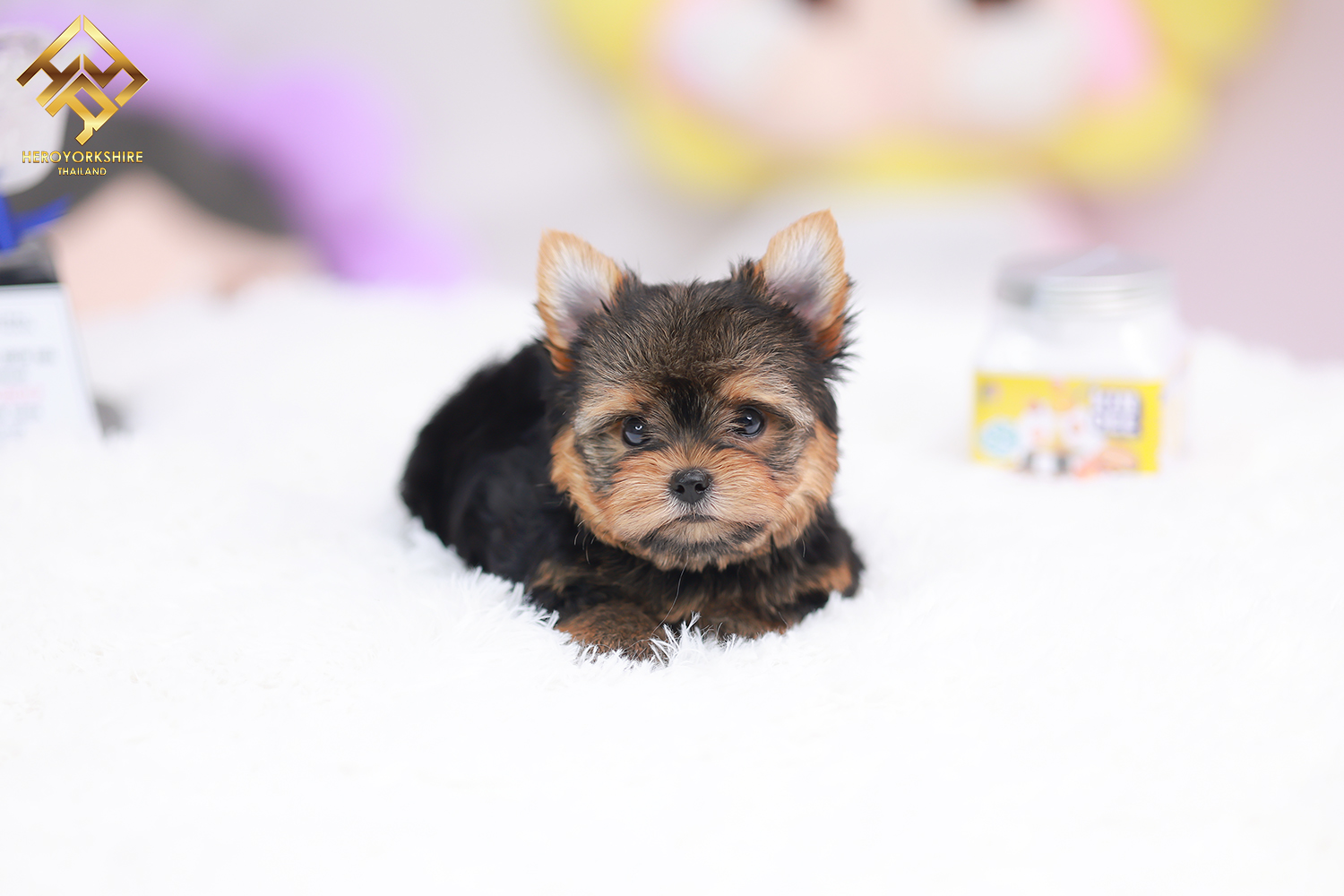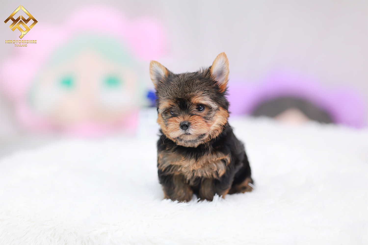 ยอร์คเชียร์ เทอร์เรีย HYM-50506 เพศชาย สีแบล็คแทน อายุ 2 เดือน ตัวเล็ก ขาสั้น หน้าสั้น ขนแน่นฟู